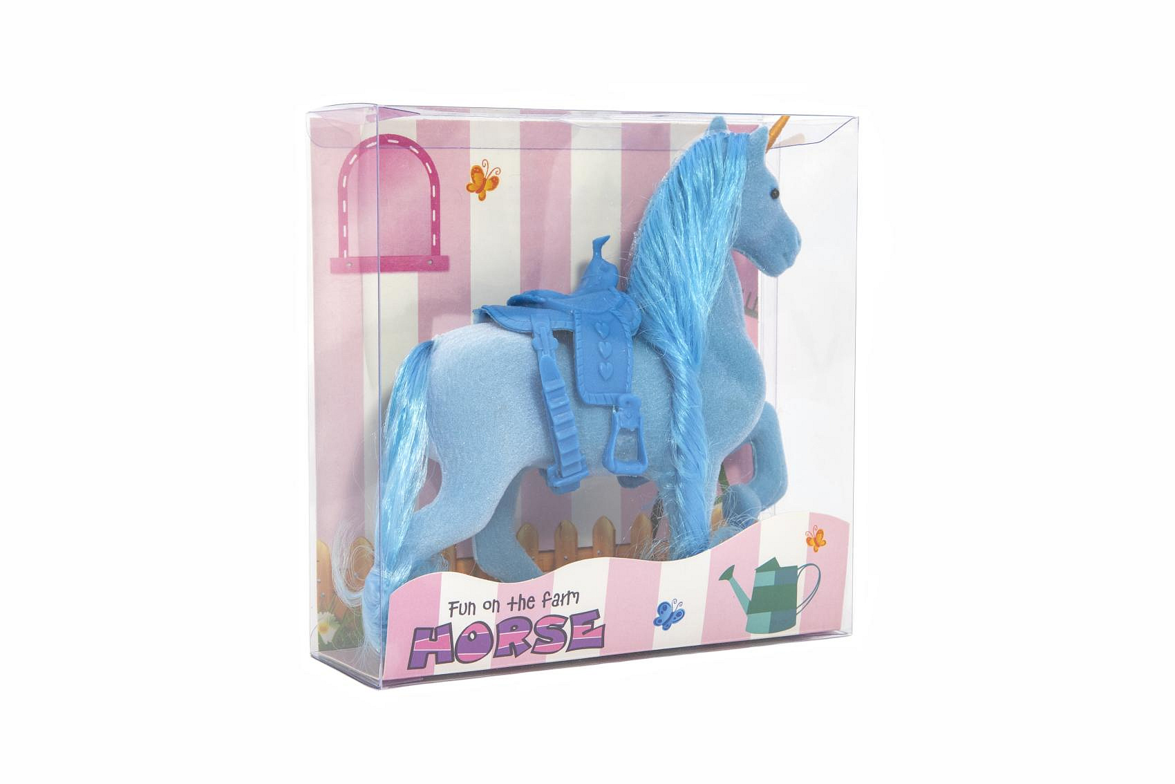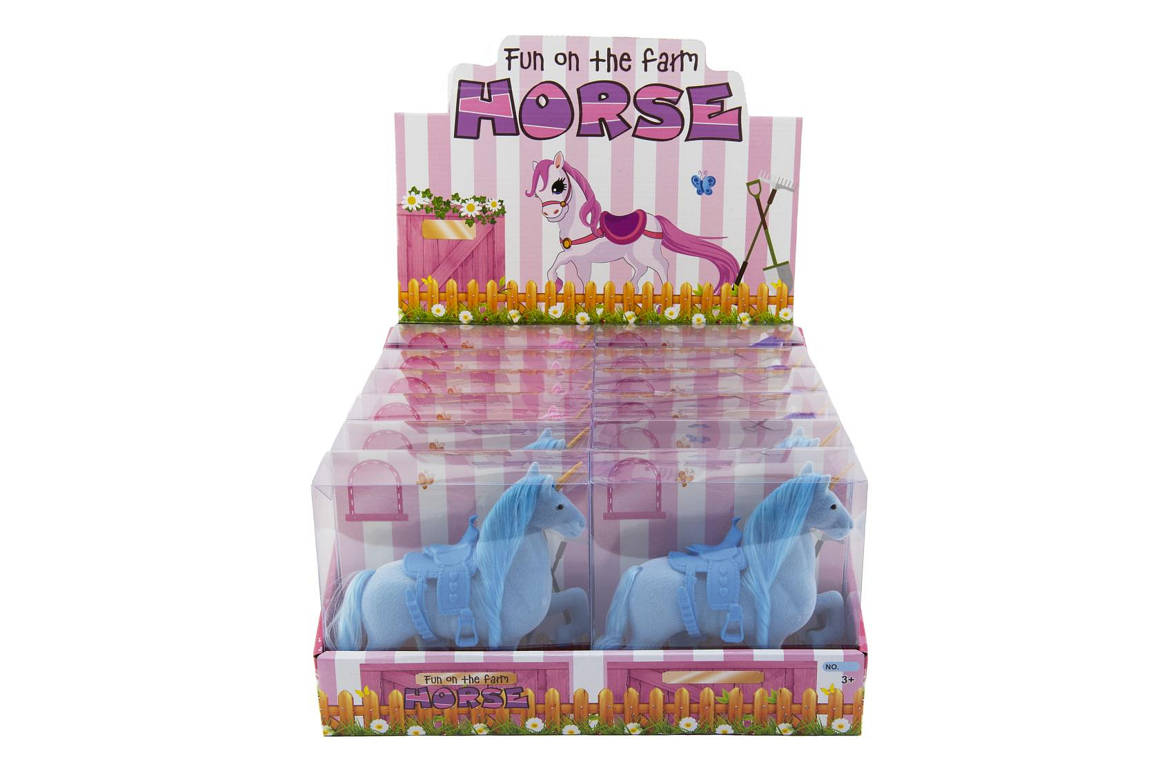 Jednorožec kůň fliška se sedlem 21cm 3 barvy v krabičce 16x17x5,5cm 12ks v boxu