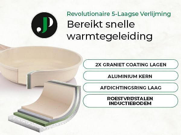 The Just Perfecto JL-31 Granite Cookware Set is a compact and efficient 13-piece collection designed for modern kitchens that demand performance, durability, and healthy cooking. Made from high-quality cast aluminum with a PTFE- and PFOA-free ceramic non-stick coating, it ensures smooth food release and reduced oil usage for everyday meals. Its thick forged body delivers rapid and even heat distribution, preventing hot spots and guaranteeing consistent cooking results. The soft-touch wood-effect handles remain comfortable and cool, adding both safety and elegance to the cookware. With its timeless beige granite design, the JL-31 blends seamlessly into any kitchen while offering long-lasting reliability.
