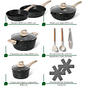 The Just Perfecto JL-32 Granite Cookware Set is a versatile 13-piece cookware collection designed for modern kitchens that demand durability, efficiency, and healthy cooking performance. Made with high-quality die-cast aluminum and reinforced with a granite ceramic non-stick coating, every pot and pan distributes heat evenly while ensuring effortless food release with minimal oil. The elegant black granite finish paired with soft-touch wood-effect handles creates a premium, modern design suitable for both home and professional use.