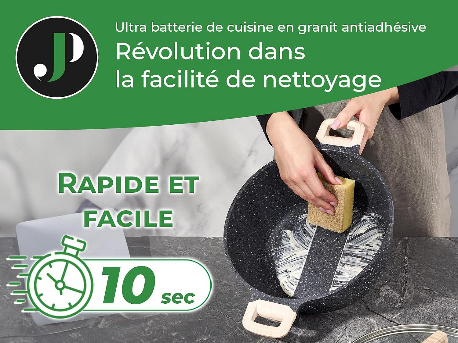 - Coating: Ceramic Granite Non-Stick (PFAS-Free, PFOA-Free, PTFE-Free, Lead-Free, Cadmium-Free)