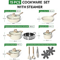 - Product Type: 15 Pieces Granite Cookware Set with Steamer