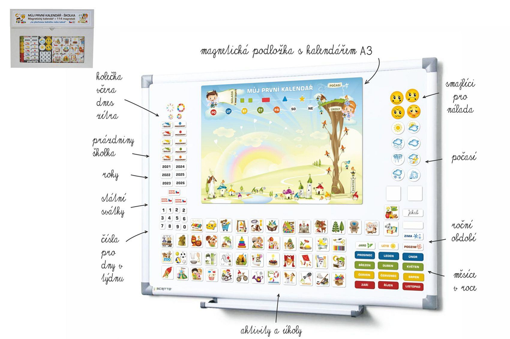 Kalendář magnetický - Školka 114ks magnetek v kartonu 45x32x1cm