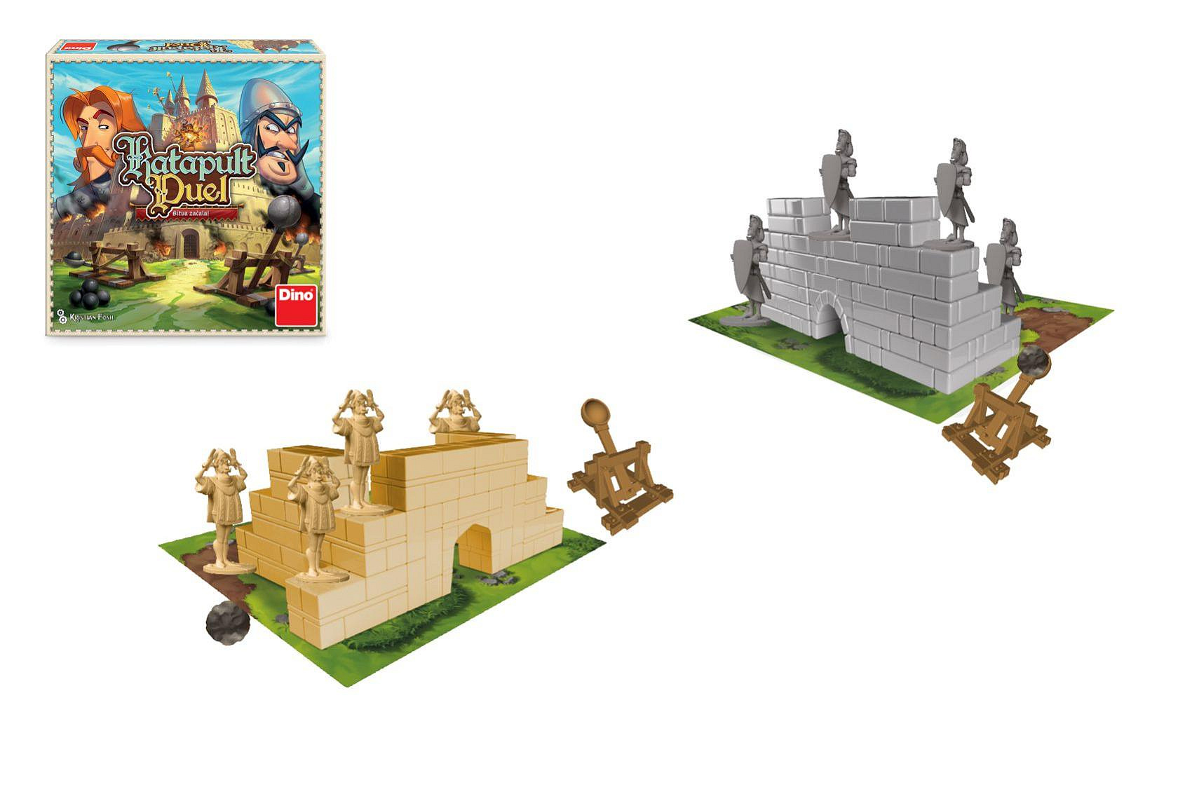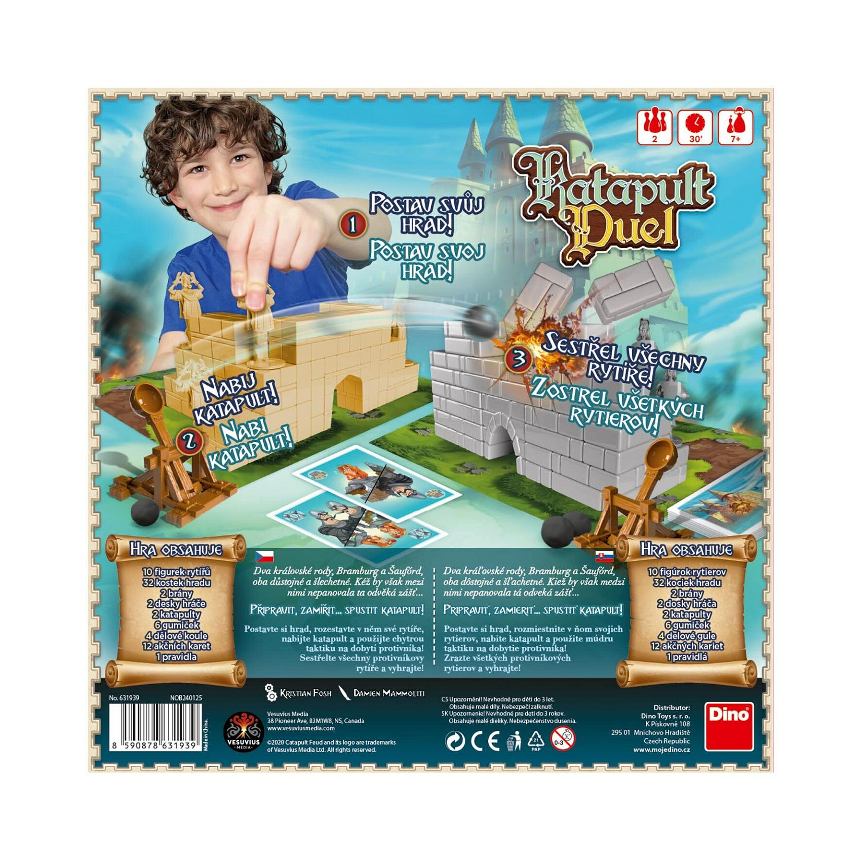 Souboj katapultů právě začíná! Postavte své hrady pevně a rozmístěte obranné jednotky chytře. Hrajte takticky s kartami nebo prostě jen střílejte. Vítězem se stane ten, kdo protihráči shodí poslední figurku. Hra od 7 let pro 2 hráče.