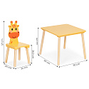 The set includes two comfortable chairs designed for ergonomics and comfort for the youngest children. Their dimensions are perfectly adjusted to the table height, allowing the child to maintain proper posture while sitting and ensuring full freedom of movement – both during play and learning. Giraffe-shaped backrests catch the eye and bring a joyful, child-friendly atmosphere to the room.