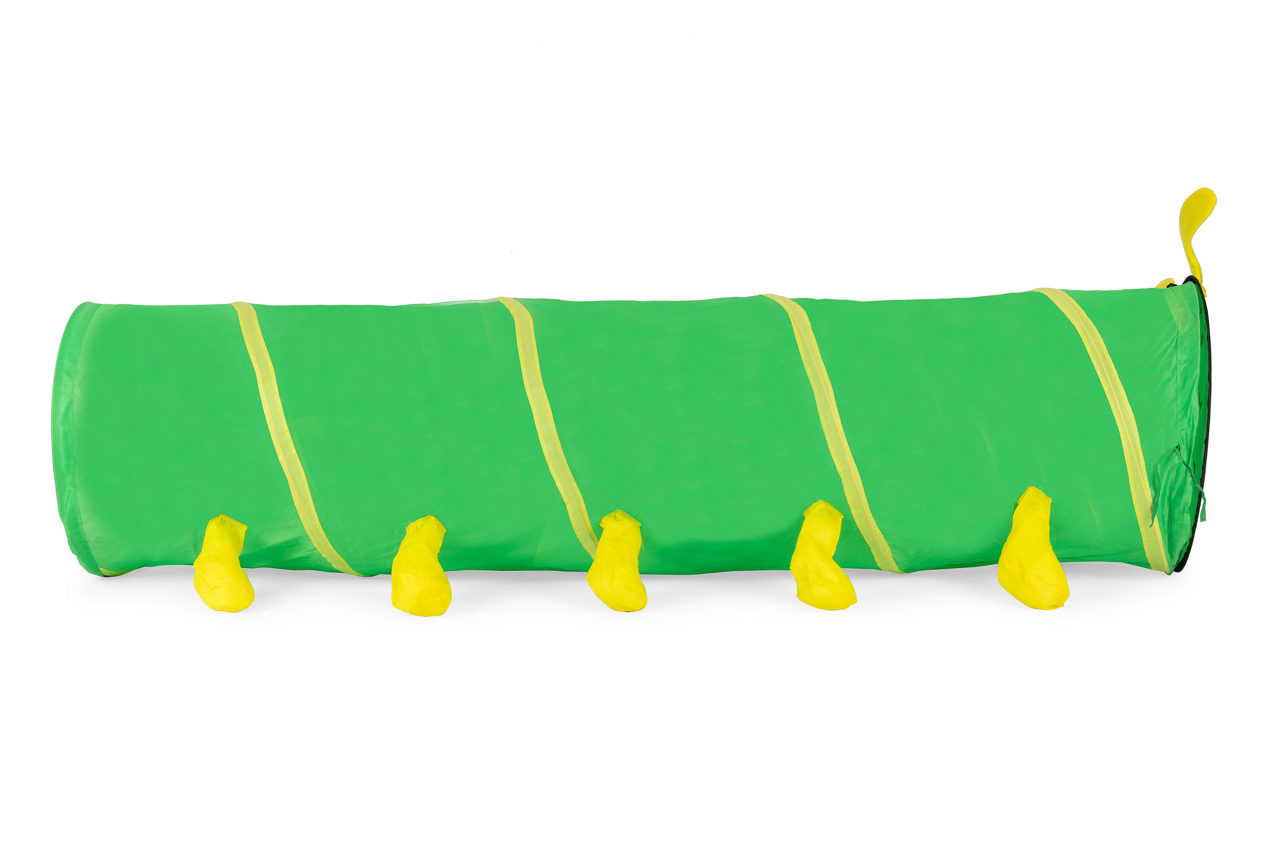 Tunel posiada samorozkładającą się konstrukcję. Wystarczy wyjąć stonogę z opakowania, rozwiązać tasiemki, a tunel sam rozwinie się do pełnego rozmiaru. Wytrzymały materiał pozwala na użytkowanie zabawki również na zewnątrz – w ogrodzie lub na tarasie. Głowa stonogi stanowi wejście do tunelu i jest przymocowana do jego górnej części.