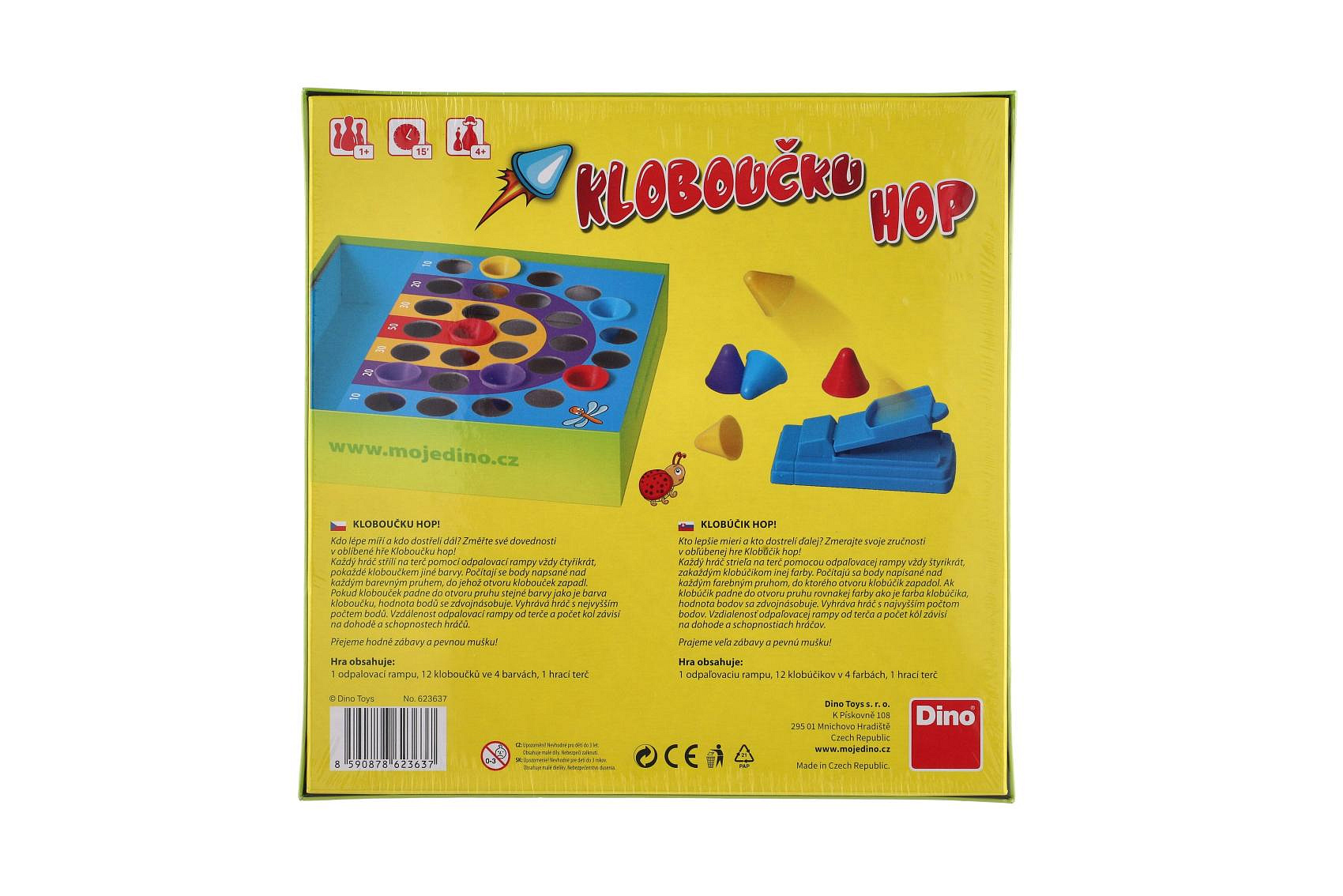 Klobouk dolů před každým, kdo se trefí všemi kloboučky do správných otvorů. Dětská hra Kloboučku Hop, při které svou mušku rádi změří i dospělí, už je téměř legendou. Každý hráč má vždy čtyři kloboučky,od každé barvy jeden a musí je z odpalovací rampy poslat směrem k terči tak, aby zůstaly v připravených otvorech. Boduje se podle dosaženého pásma, pokud klobouček padne do otvoru pruhu stejné barvy jako je barva kloboučku, hodnota bodů se zdvojnásobuje
