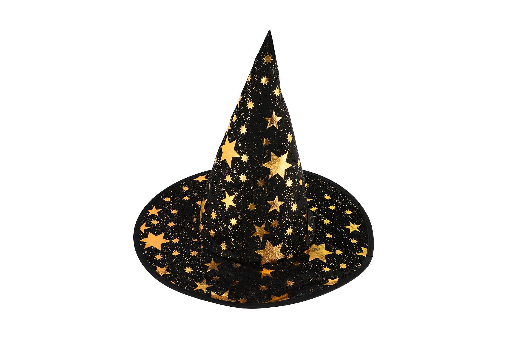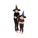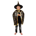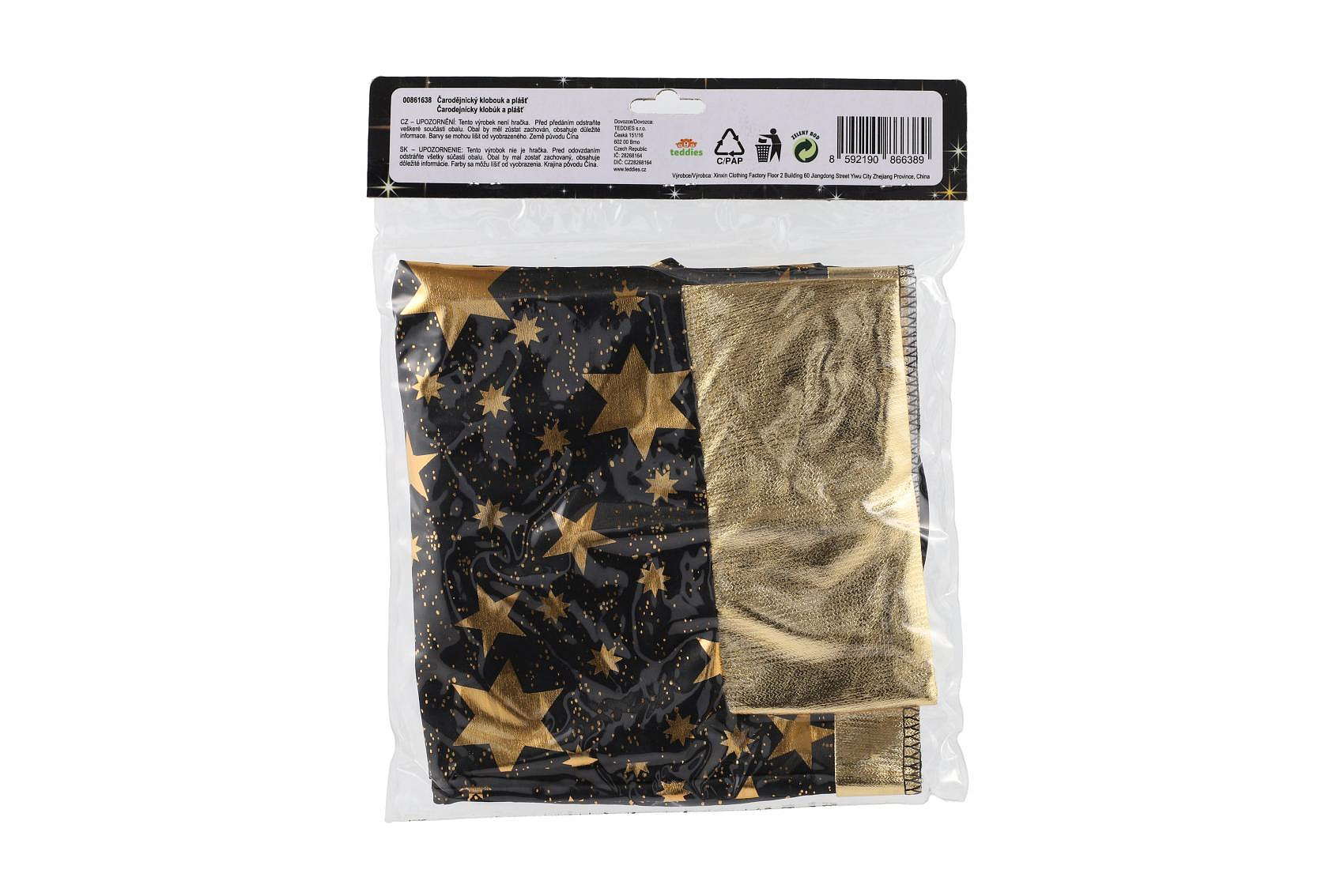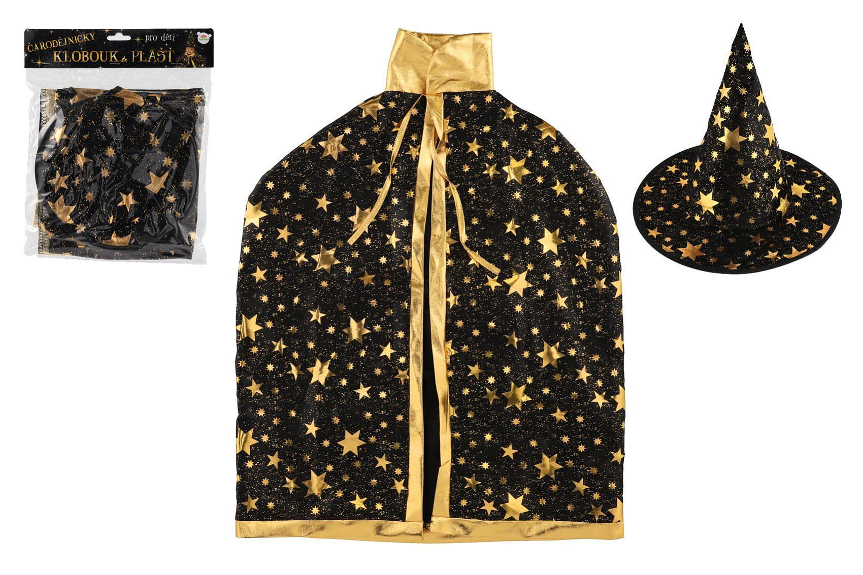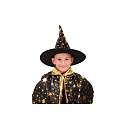 Popis Klobouk čarodějnický + plášť pro děti průměr 38cm černo-zlatý v sáčku karneval