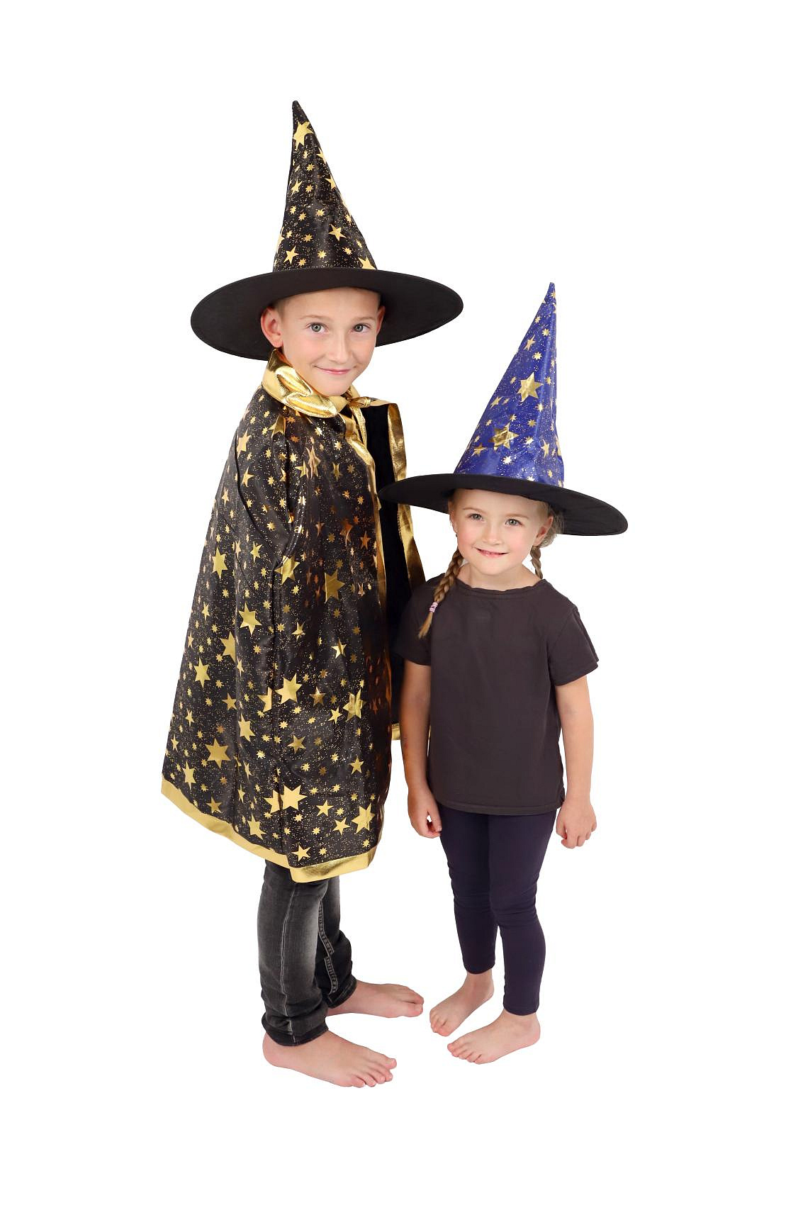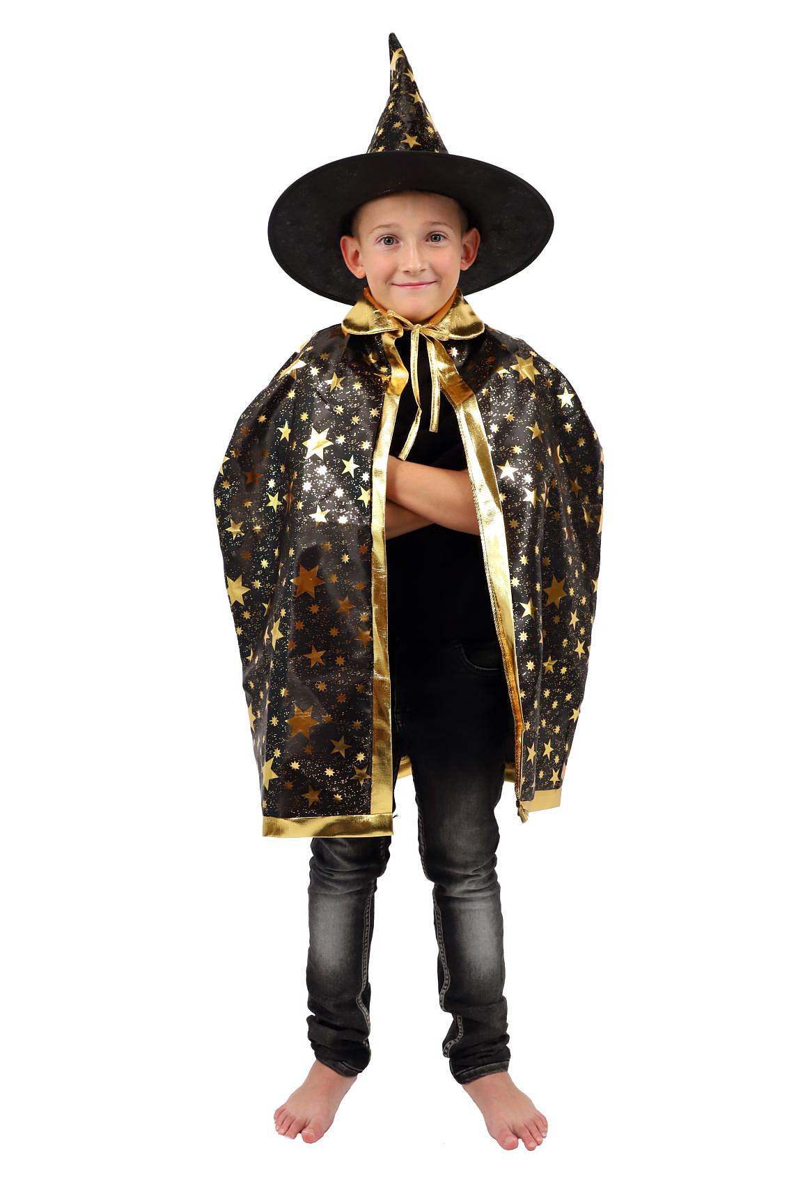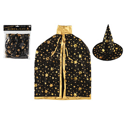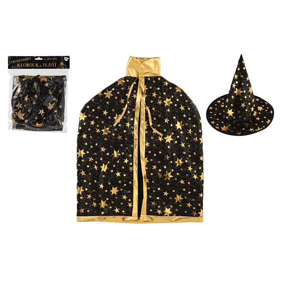 Dětský čarodějnický klobouk a plášť jsou inspirovány světem kouzel a magie. Mají černou barvu a jsou zdobené zlatými hvězdami, které vzbuzují čarodějnický dojem. Děti si mohou hrát na kouzelníky a kouzelnice, zkoumat svět kouzel a vytvářet své vlastní příběhy plné dobrodružství a fantazie. Čarodějnický klobouk s pláštěm jsou oblíbenou součástí karnevalových a halloweenských kostýmů. Není hračka