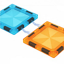 The blocks connect using safe magnets built into the frames of each element. This allows children to easily and quickly build stable structures without force or additional connectors. The elements “attract themselves” automatically, making play easier and allowing endless building and rebuilding of any form. Magnetic connections are intuitive and encourage independent experimentation.