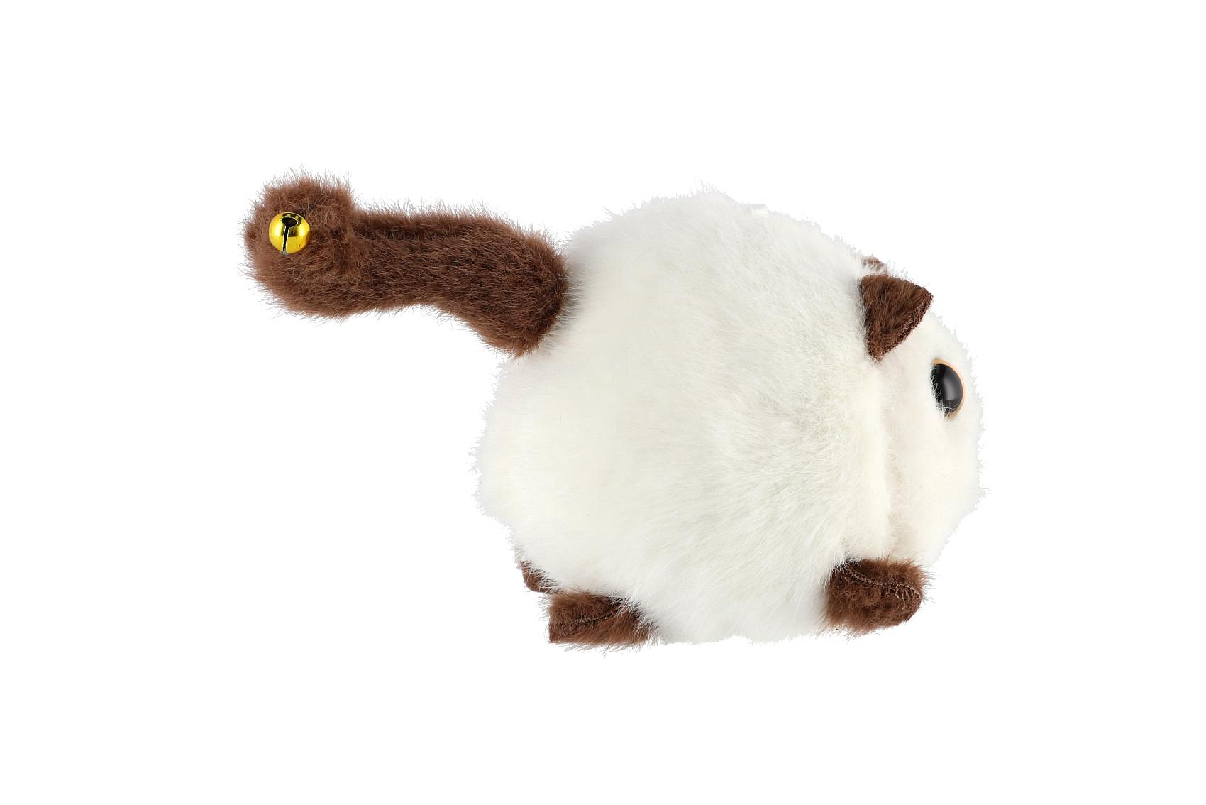 Natáhněte provázek umístěný na kočičce, po natažení se kočičce točí ocásek. Na konci ocásku má malou rolničku. Rozměr kočičky: 10 cm Vhodné pro děti od 3 let