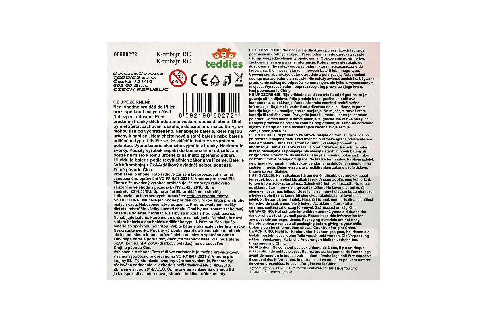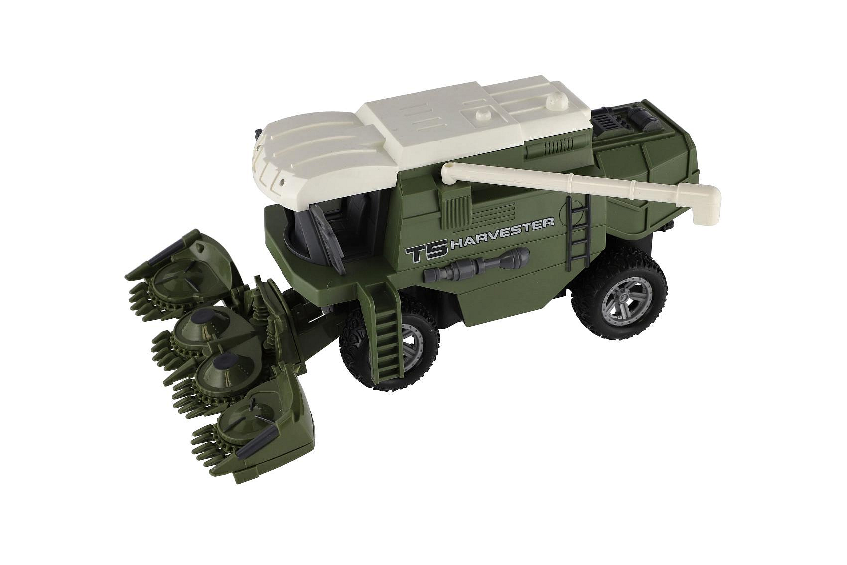 Kombajn na kukuřici RC plast 22cm 27MHz na baterie se světlem v krabici 30x21x12cm