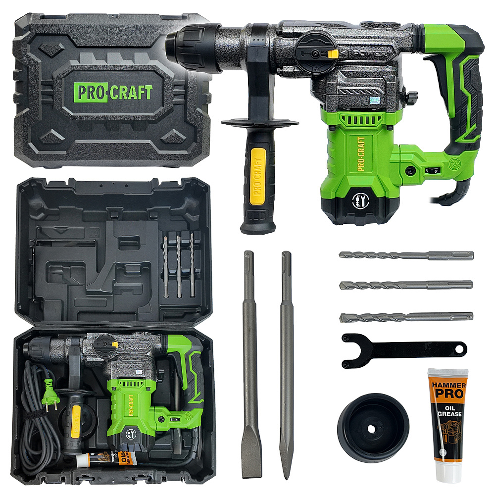 Kombinované vrtací a sekací kladivo Procraft BH1800 Rychloupínací sklíčidlo SDS-plus, regulace otáče
