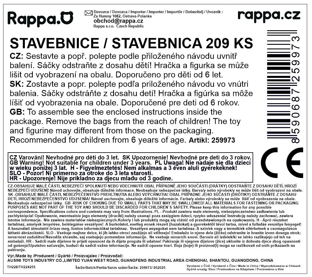 Popis Kompatibilní stavebnice BLOXO popeláři 209 ks