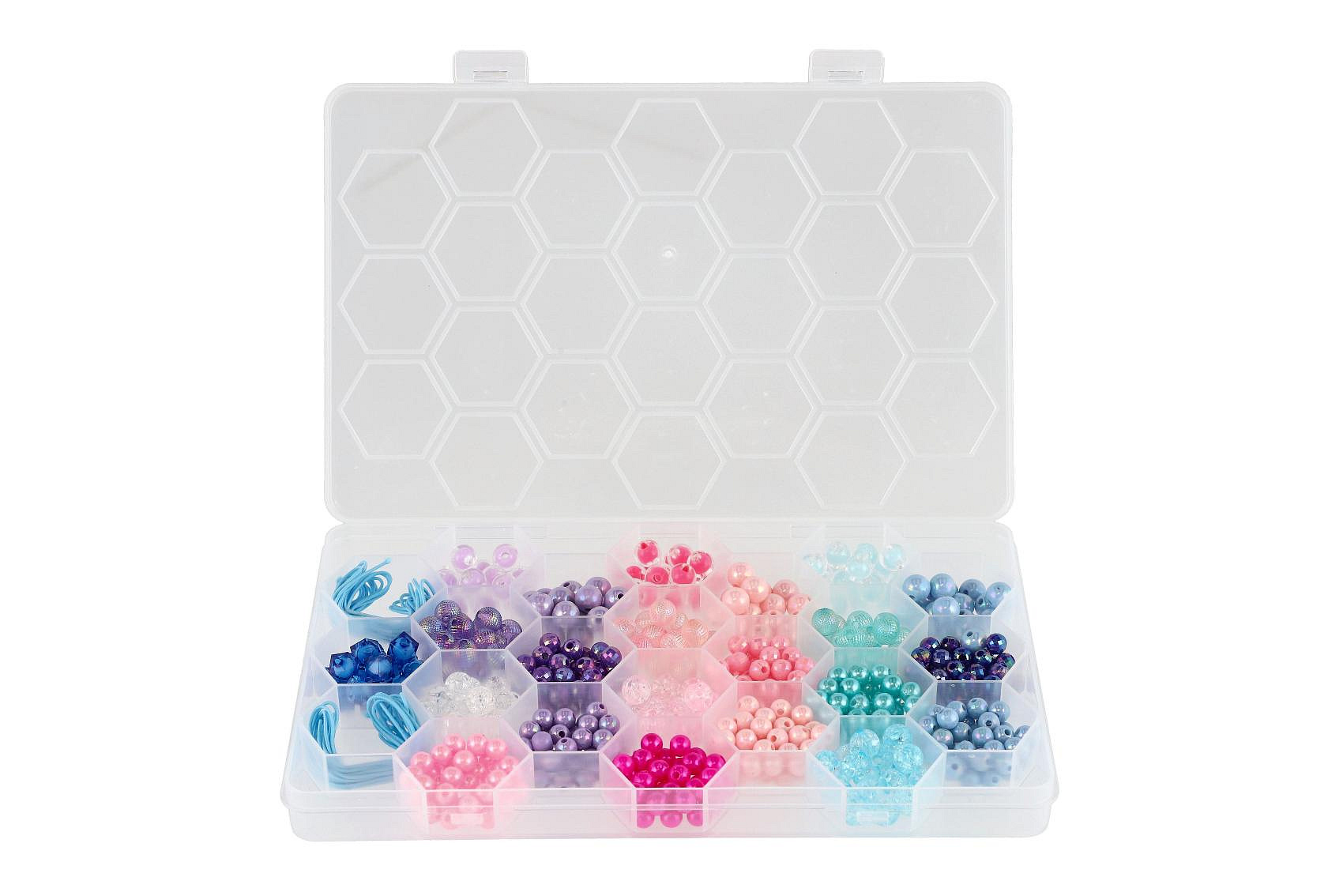 Popis Korálky plastové barevné se šňůrkou v plastové krabičce 20x16,5cm
