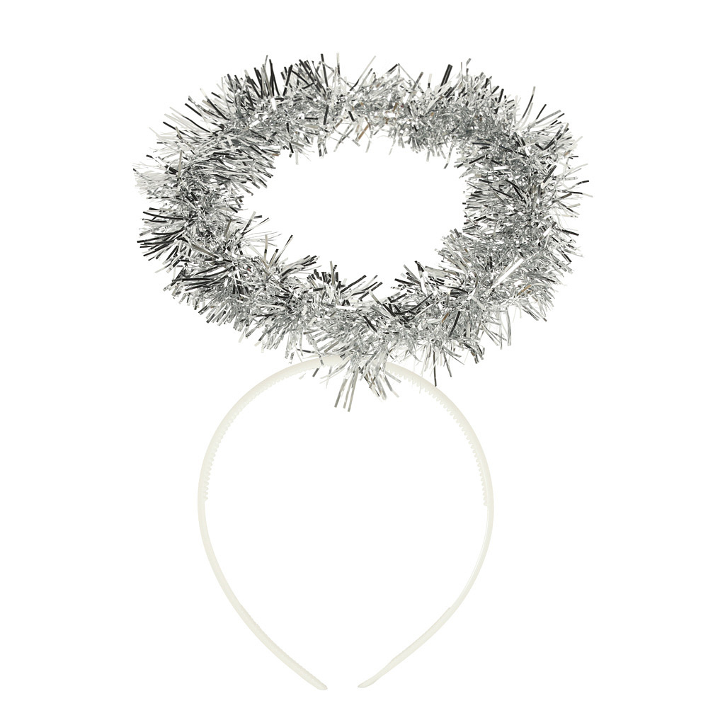 • Stříbrná aureola vyrobená z ozdobné, lesklé pleteniny tvoří elegantní, andělský akcent a krásně doplňuje celý kostým