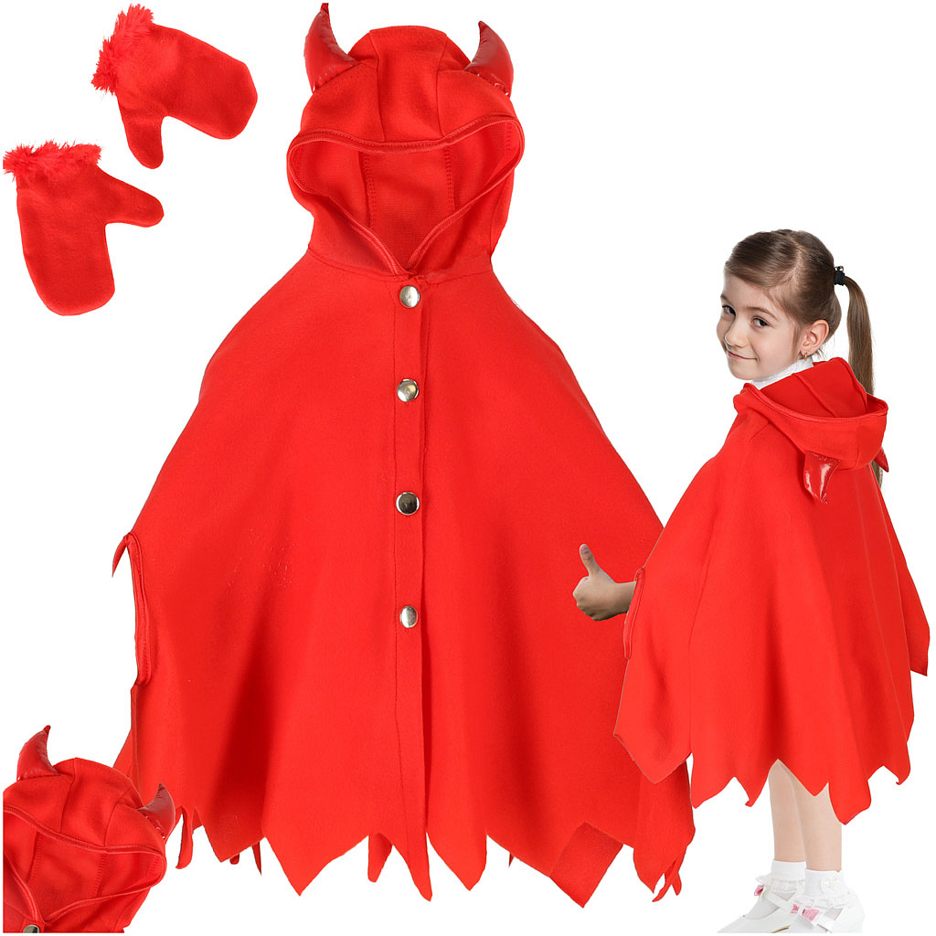 Plášť s kapucí a rohy – kostým ďáblíka pro děti s rukavicemi v sadě