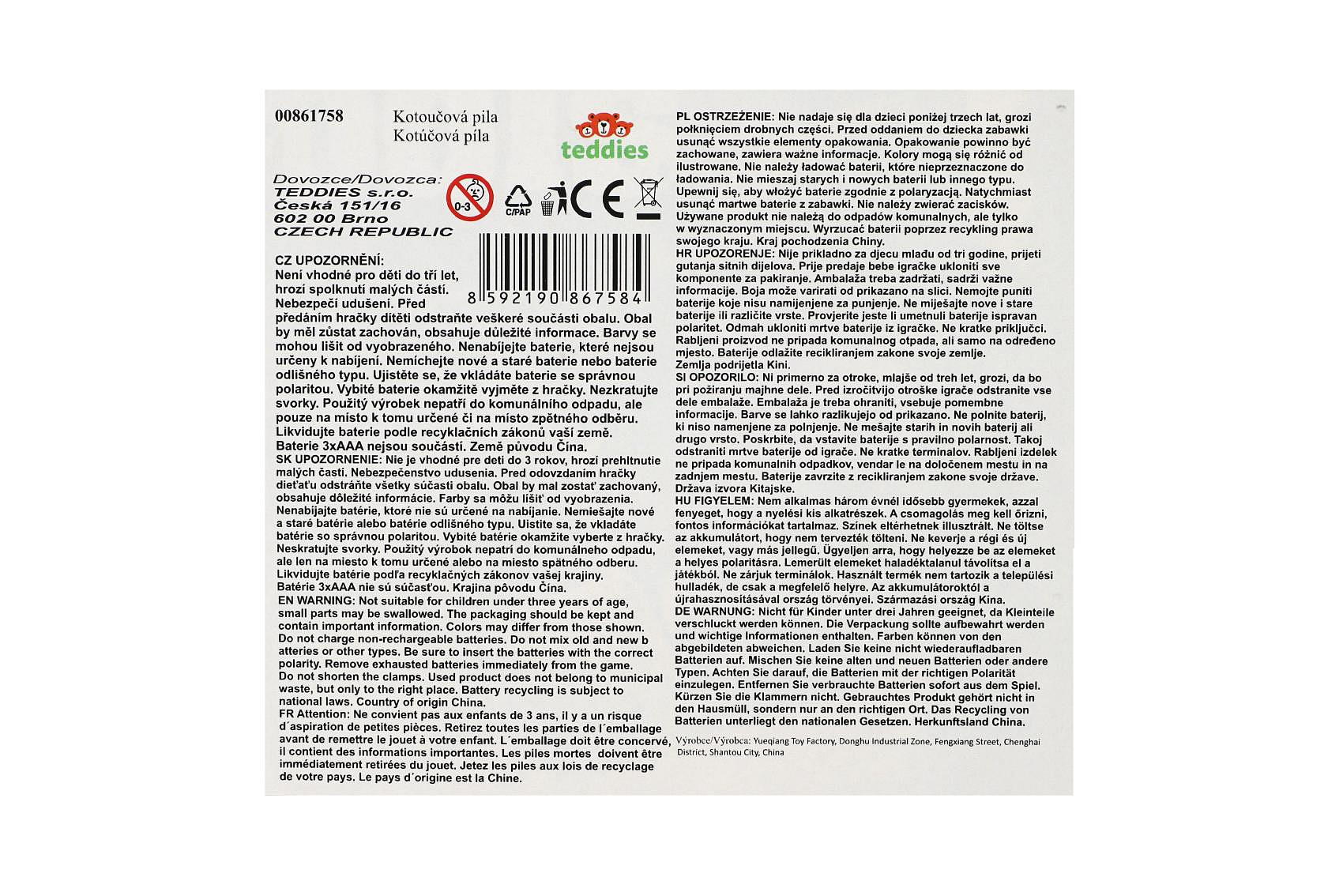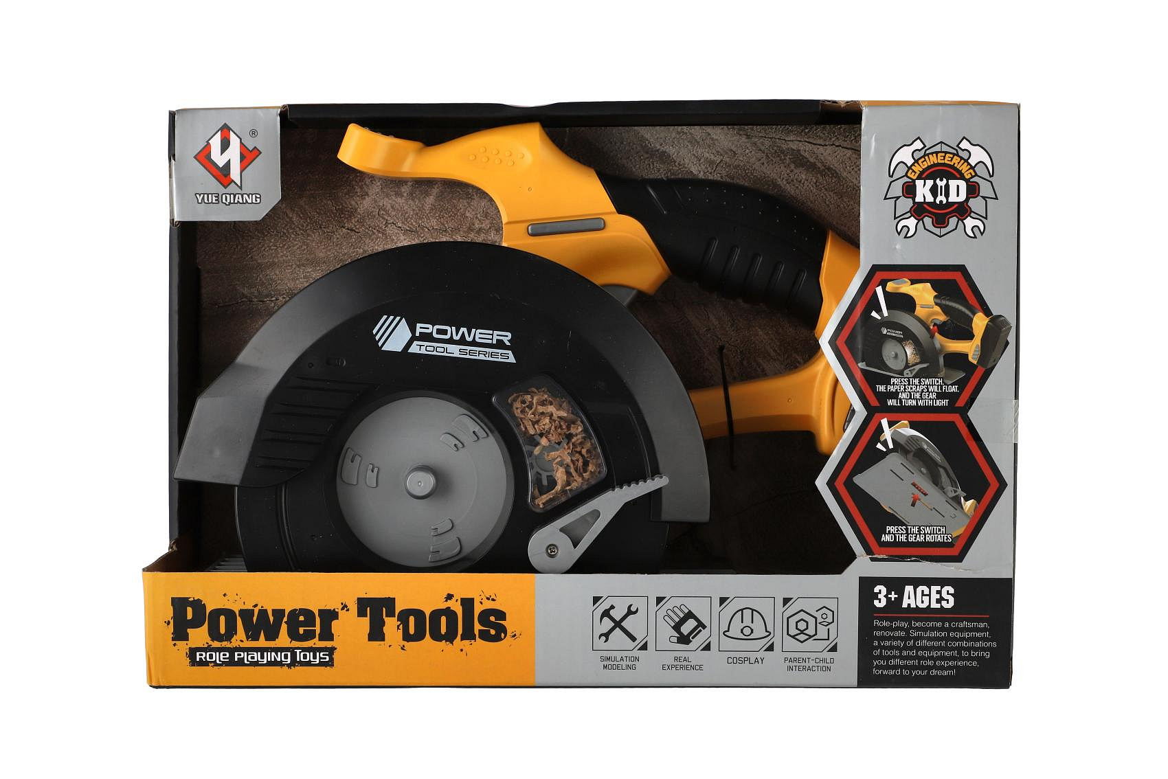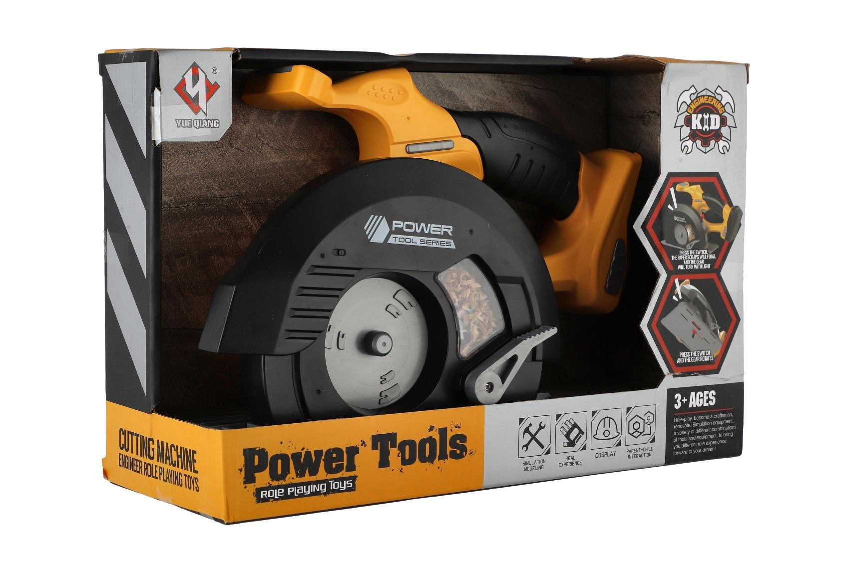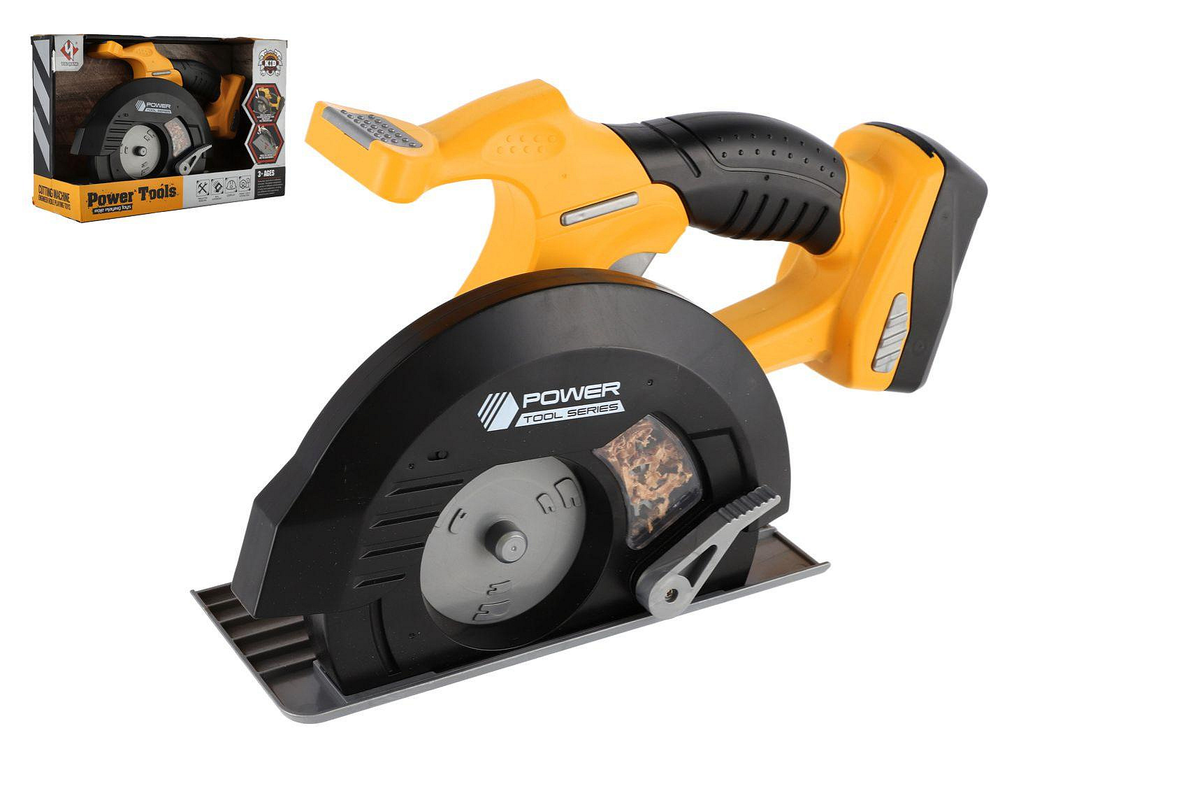 Kotoučová pila nářadí plast 29x19cm na baterie se zvukem v krabici 31x21x12cm