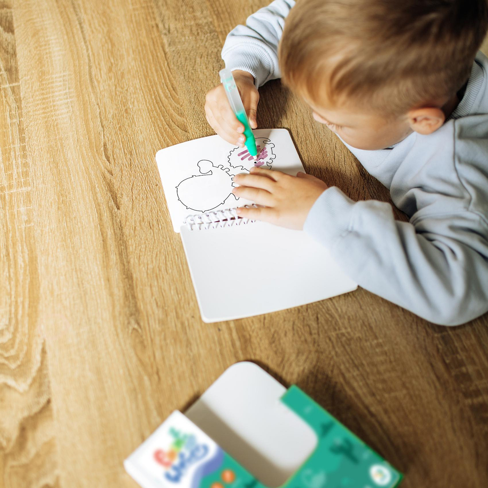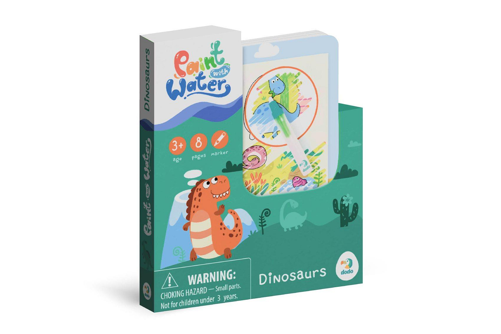 Kouzelné malování vodou s dinosaury nadchne každého malého průzkumníka! Tento praktický blok obsahuje 8 stránek s obrázky dinosaurů, které ožijí barvami po naplnění štětce vodou. Stačí malovat vodou a sledovat, jak se barevné detaily objeví bez nutnosti dalších pomůcek. Ideální pro zábavné cestování nebo tvořivé chvilky doma. Stačí štetec odšroubovat, naplnit vodou, vybarvit obrázky. Po uschnutí obrázek zase zmizí a lze tak používat opakovaně. Velikost sešitu: 12 x 14 cm Vhodné pro děti od 3 let