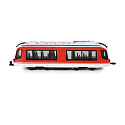 Originální kovová tramvaj červené barvy, která jezdí na zpětný chod. Délka tramvaje je 20 cm. Dveře