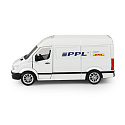 Rozšiř si svůj vozový park a pořiď si tuhle originální kovovou dodávku s logem přepravní společnosti PPL. Auto má otevírací přední dveře. Jezdí na zpětný chod a jeho délka je 12 cm.
