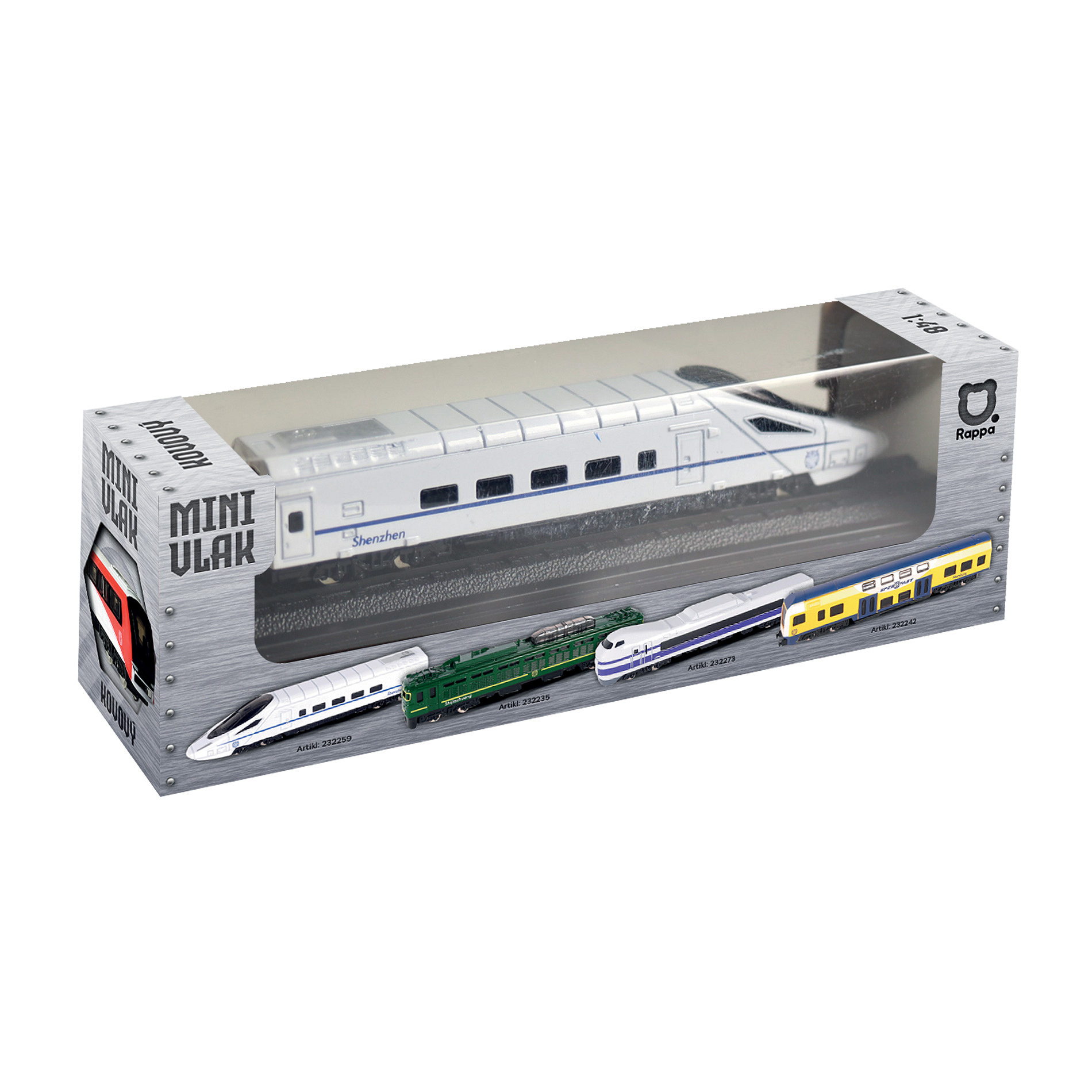 Moderní mini rychlovlak nesmí chybět v pokojíčku žádnému fandovi vláčků! Tento úžasný kovový vláček o velikosti 15 cm je ideální jako dárek nebo jako sběratelský kousek! Vláček jezdí na volný chod a je v měřítku 1:48.