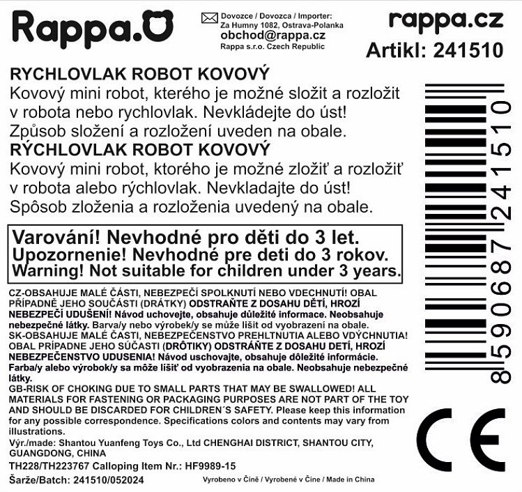 Senzační kovový mini robot, kterého jednoduše přestavíš do podoby rychlovlaku! Délka cca 11 cm.