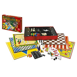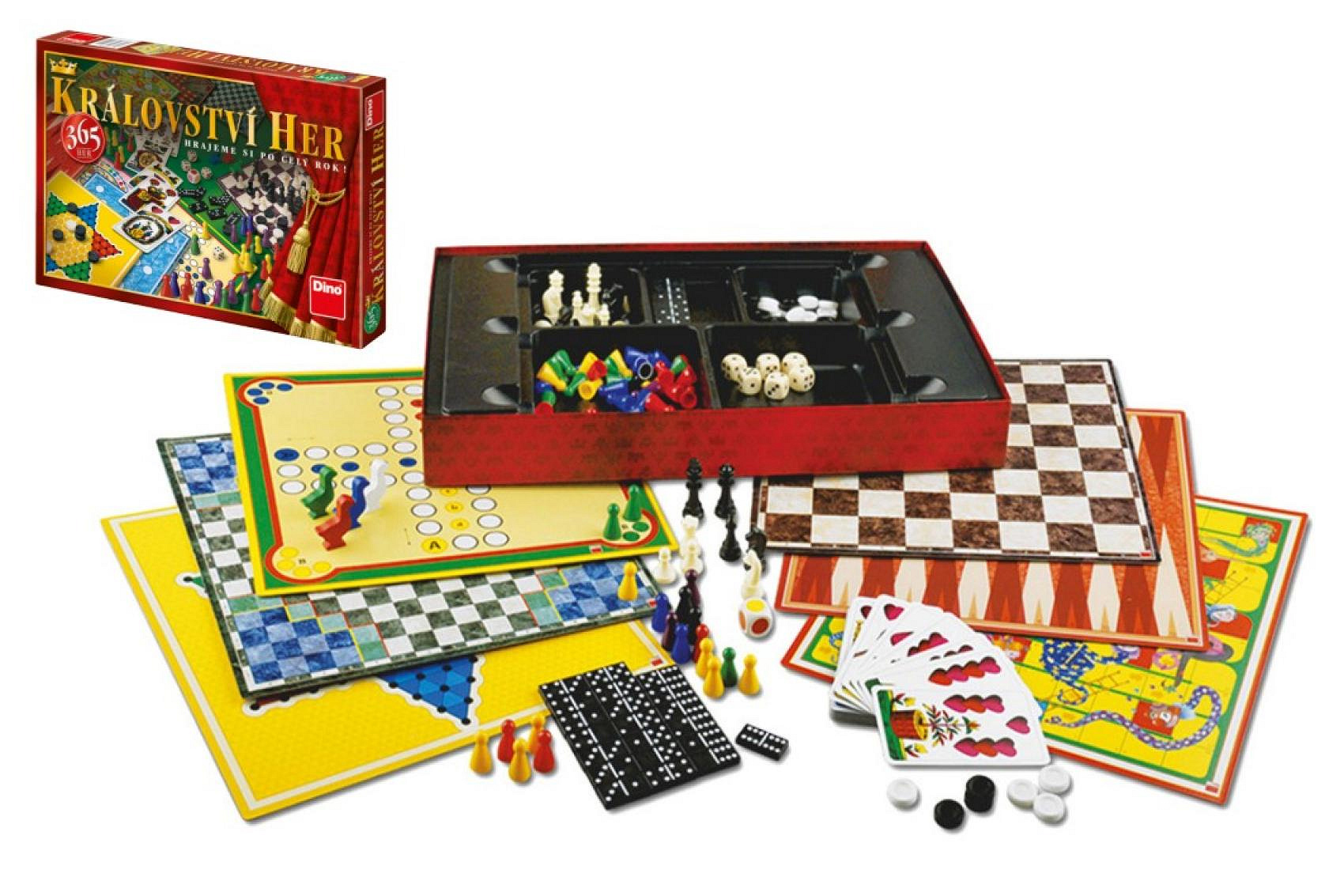 Mít na každý den v roce novou hru? S Královstvím her se vám přesně toto přání splní. Vyhrávejte v mnoha variacích Člověče, nezlob se!, objevte všechna možná využití šachovnice, různé obměny mlýna, dámy, halmy, domina a jiných klasických her. V sadě nechybí ani kostky, plán a figurky na hru husičky, kolotoč a spousta dalšího. Na své si přijdou malí i velcí! Soubor her byl vyroben v ČR.