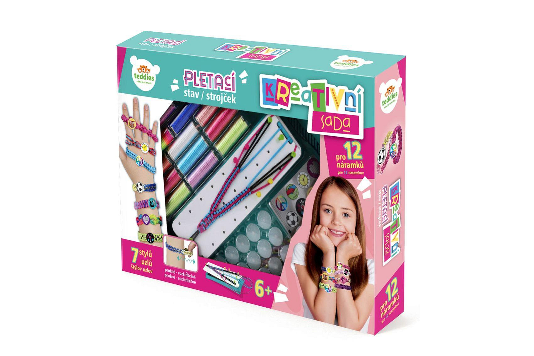 Kreativní sada Vyrob si náramek - pletací stav s doplňky v krabici 38x28x6cm
