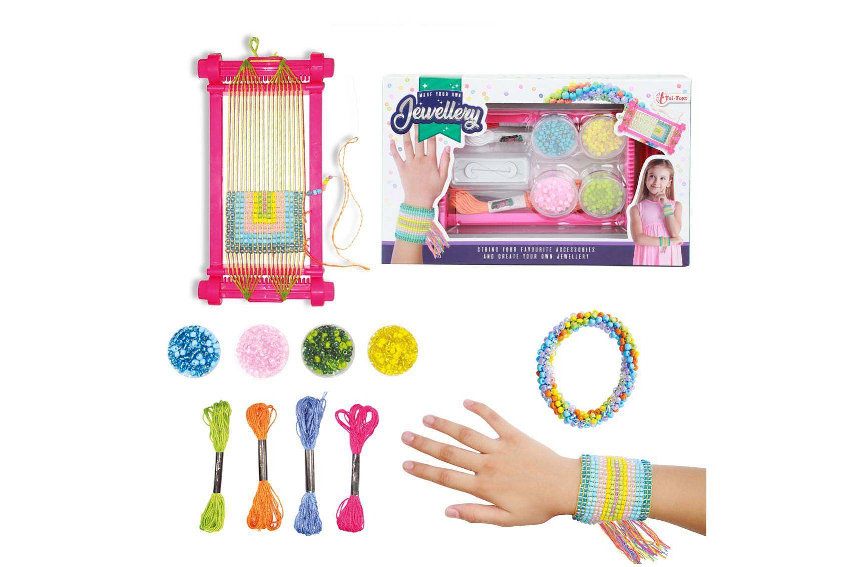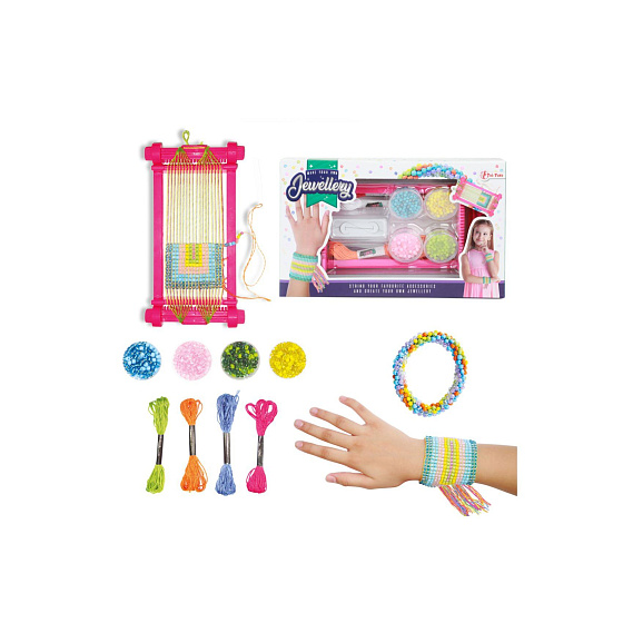 Upleť si svůj náramek, který se bude hodi k tvému outfitu. Skvělá zábava pro volné chvíle. Vytvořte si šperk vskutku originální, který nebude mít nikdo jiný! Sada obsahuje 4 barevné bavlnky, 4 barvy korálků a pletací stav. Rozměry výrobku 25 x 15 x 3 cm. Vhodné pro děti od 8 let.