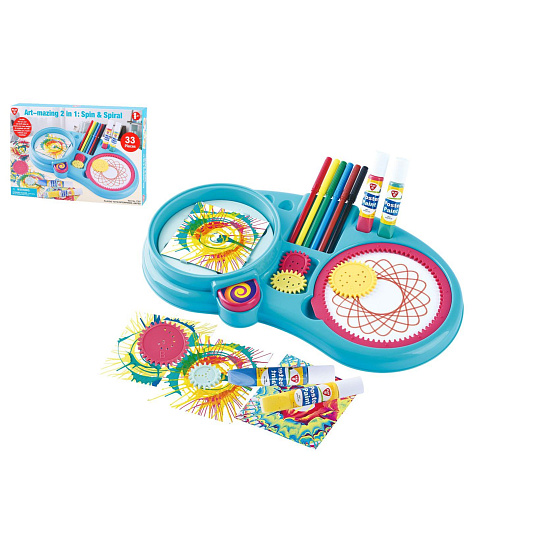 Rozvíjejte fantazii a kreativitu dětí s touto bohatou kreslící sadou. Obsahuje vše potřebné pro vytváření barevných spirál, unikátních obrazců a originálních malířských děl. Díky širokému výběru pomůcek si děti mohou vyzkoušet různé techniky a vytvářet své vlastní umělecké projekty. Kompletní sada připravena k okamžitému použití. Rozměry balení 44 x 30 x 6 cm. Vhodné pro děti od 4 let.