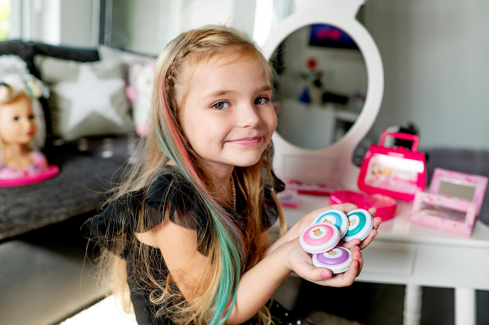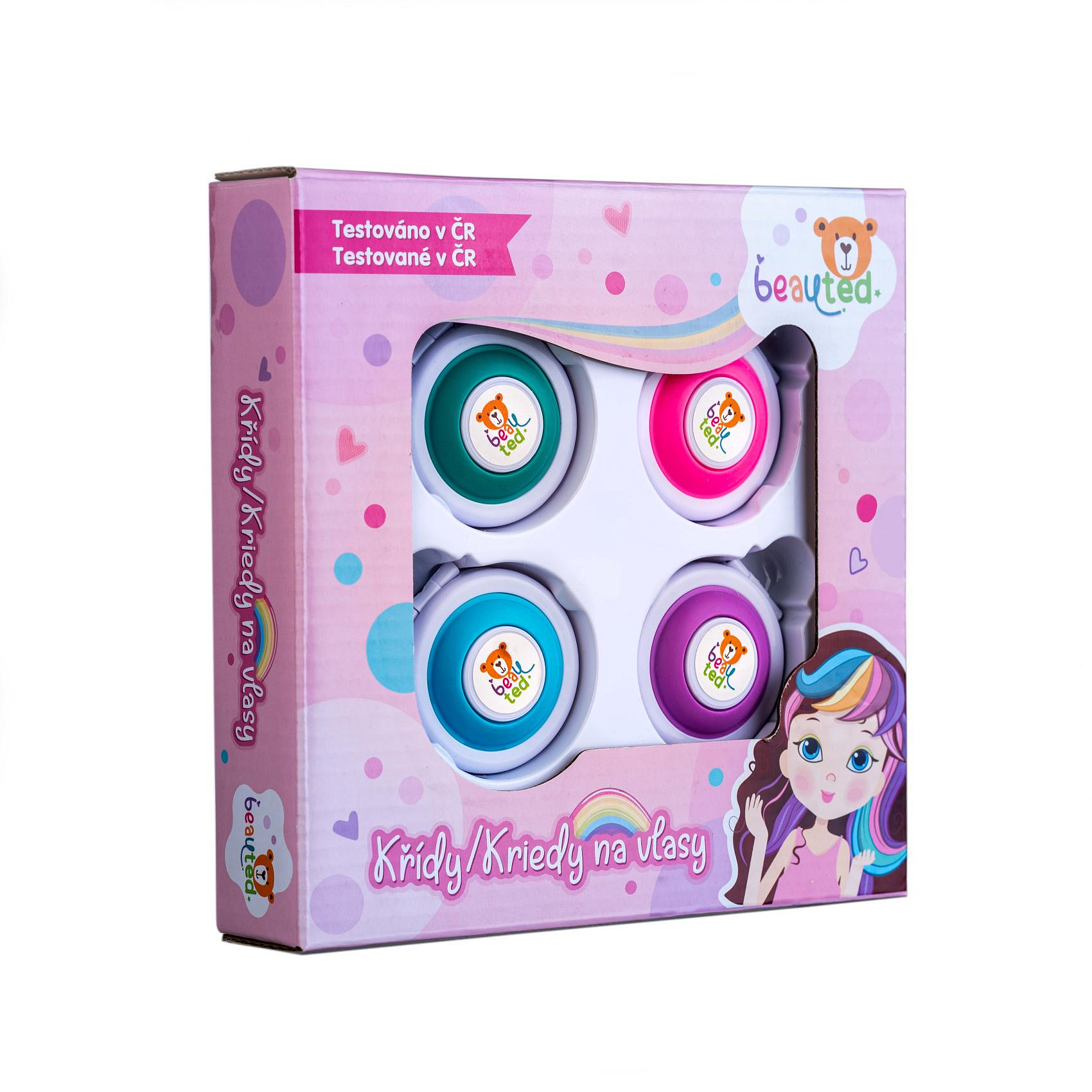 Speciální barevné křídy na vlasy, díky nimž si děti mohou nabarvit vlasy dle vlastní fantazie. Křídy se snadno umyjí šamponem. Vítejte v hravém a bezpečném světě kosmetiky značky beauted. Malé holčičky se začínají seznamovat se světem krásy již od raného dětství a brzy je zajímá vše, co jejich maminky používají. Značka beauted je k objevování kosmetiky jako stvořená. Produkty této řady jsou navrženy tak, aby byly hlavně bezpečné, ale také hravé a inspirativní. Podpoří kreativitu a představivost, umožní rozvíjet a formovat smysl pro estetiku a krásu. Značka beauted je laboratorně testovaná v České republice. Kontrola těžkých kovů je prověřena státním zdravotní ústavem, plastové obaly jsou testovaných v ITC Zlín. Podklady pro evropský portál notifikace přípravků /CPNP/ jsou rovněž zpracovány laboratoří v ČR. Certifikace v České republice zaručuje kvalitu a bezpečnost, aby rodiče mohli mít jistotu, že produkty značky beauted jsou kvalitní, bezpečné a šetrné k dětské pokožce. Rozměr křídy: 5 cm Vhodné od 6 let
