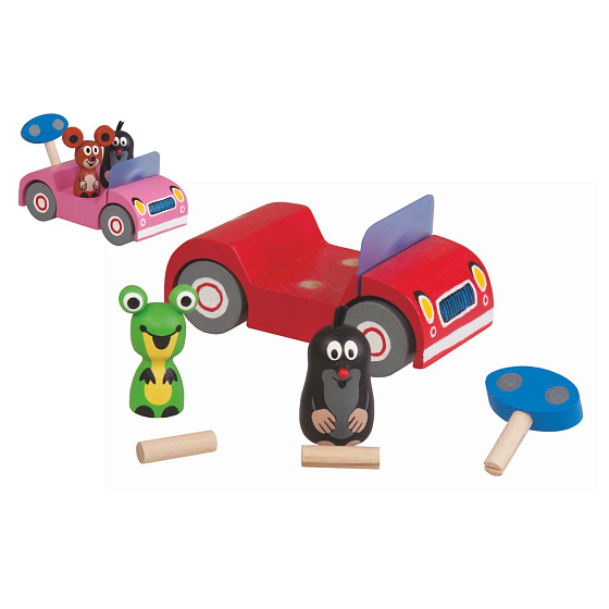 Krteček s kamarádkou Žabkou se vydali na výlet v červeném autíčku. Figurky i klíček lze libovolně vyndávat a prohazovat. Velikost: 5 x 5 x 11 cm, v krabičce. Vhodné od 3 let.