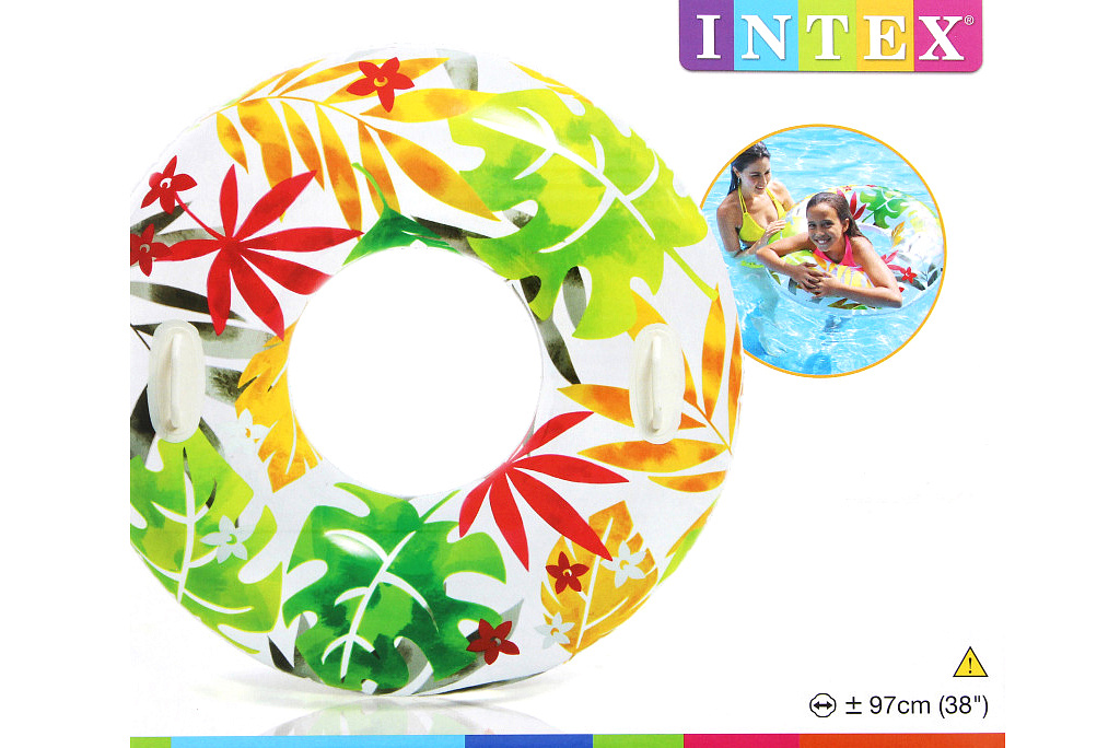 Komfortní nafukovací kruh s motivy rostlin nesmí chybět na žádné letní dovolené! Kruh o průměru 97 cm je vyroben z kvalitního PVC materiálu a má 2 praktická madla pro komfortnější držení.Více