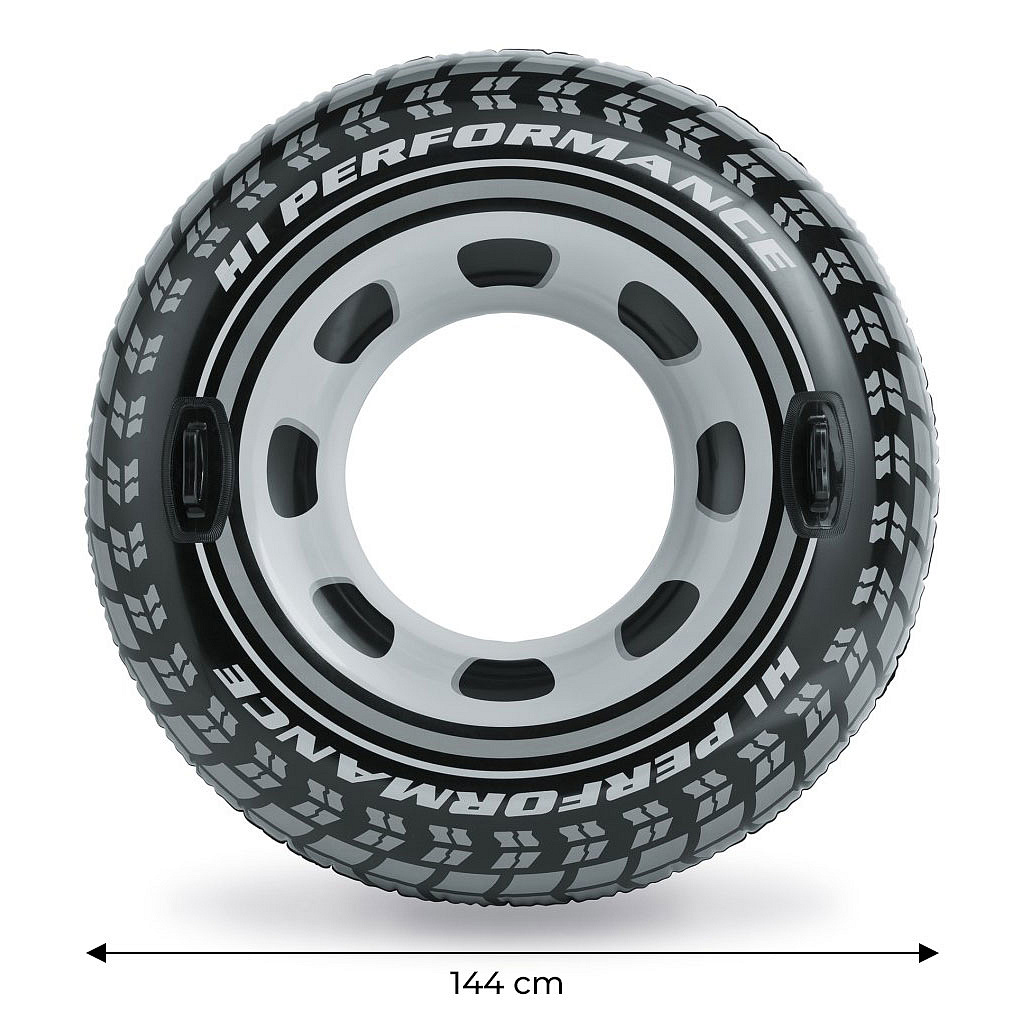 Nafukovací maxi kruh na plavání pro děti na vodu, se dvěma madly, v podobě pneumatiky. Nafukovací kruh pneumatika je plavecká pomůcka pro plavání a vodní hrátky. Tloušťka materiálu 0,25 mm, průměr kruhu 114 cm. Maximální zatížení je 100 kg. Rozměry balení 23 x 20 x 6 cm. Vhodné pro děti od 9 let.