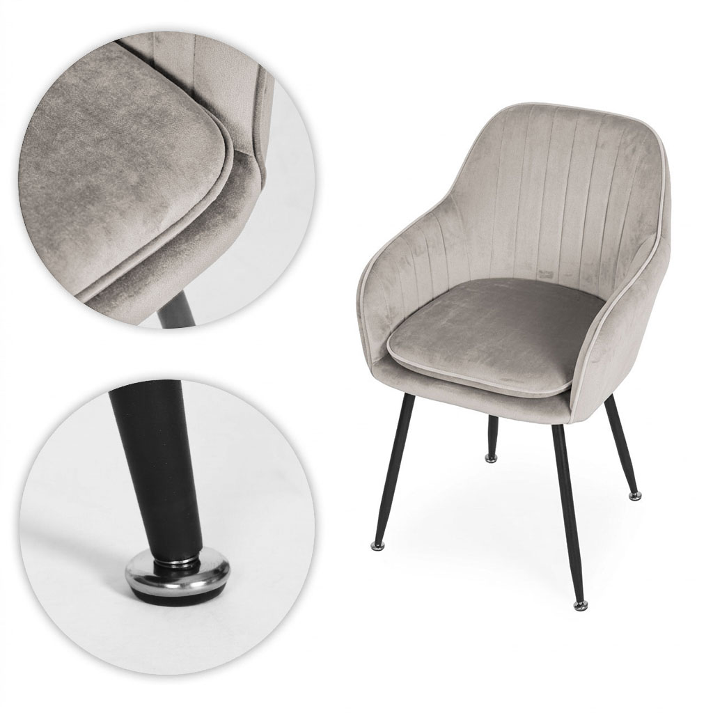 Velvet upholstery stands out with its elegant appearance and pleasant-to-touch texture, while its subtle sheen gives the whole piece a luxurious character, making the chair a perfect fit for glamour and modern interiors. The seat filled with polyurethane foam ensures high comfort of use, offering proper elasticity and convenience during everyday sitting.