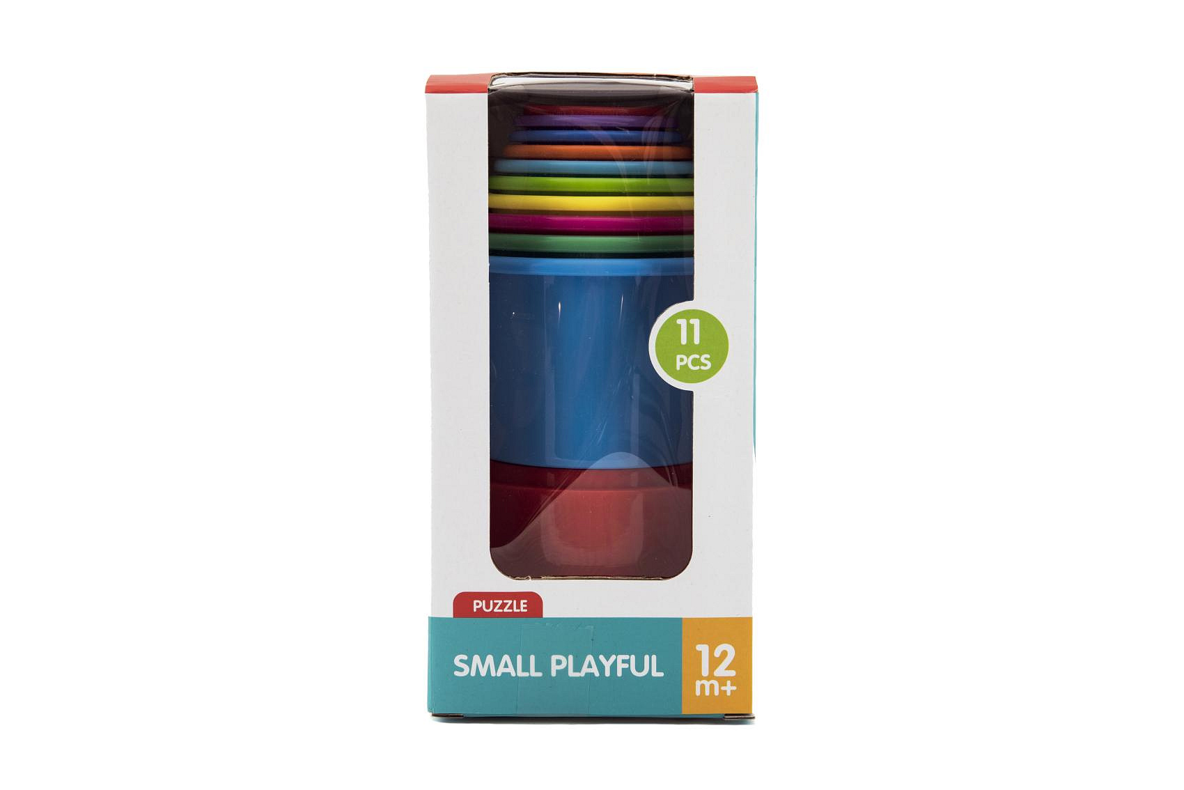 Kubus pyramida skládanka kulatá plast 11ks v krabici 11x20x11cm 12m+