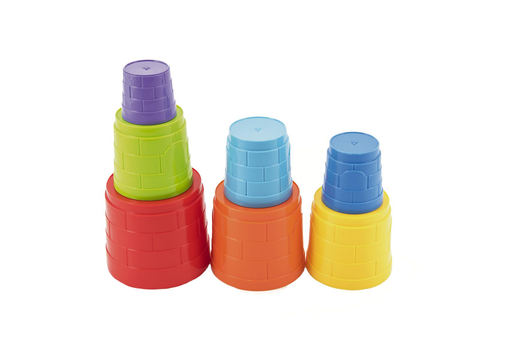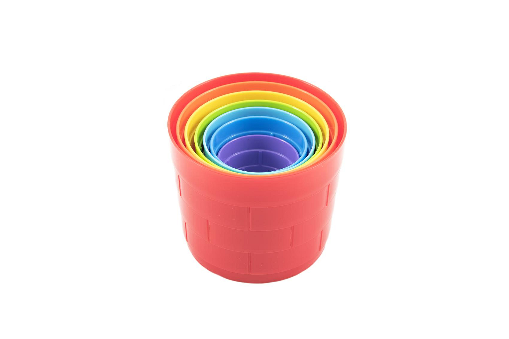Kubus pyramida skládanka plast kulatá barevná 7ks v sáčku 12m+