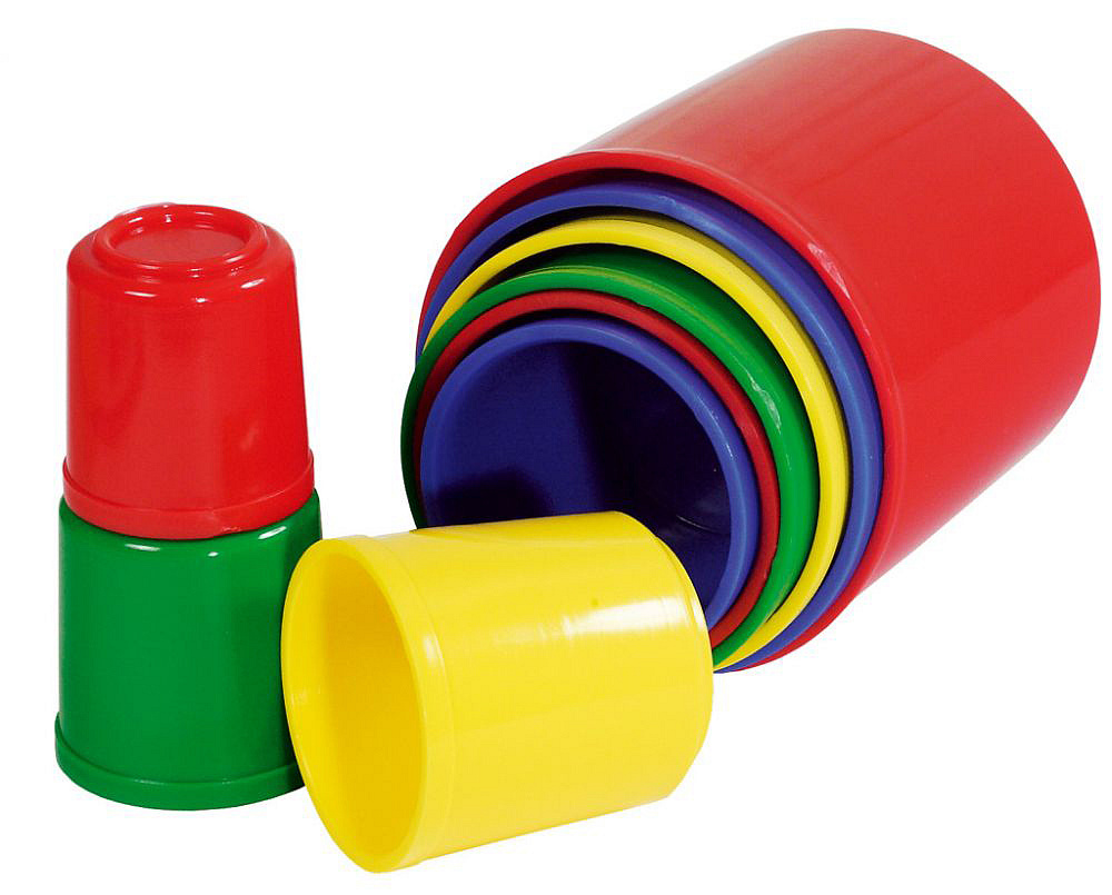 Kubus obsahuje devět kalíšků různých barev, které do sebe zapadají. Skládanku si děti mohou vzít i na písek nebo do vody.