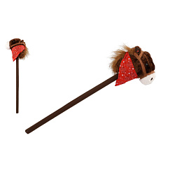 Kůň na tyči plyš 80cm na baterie se zvukem hnědý v sáčku