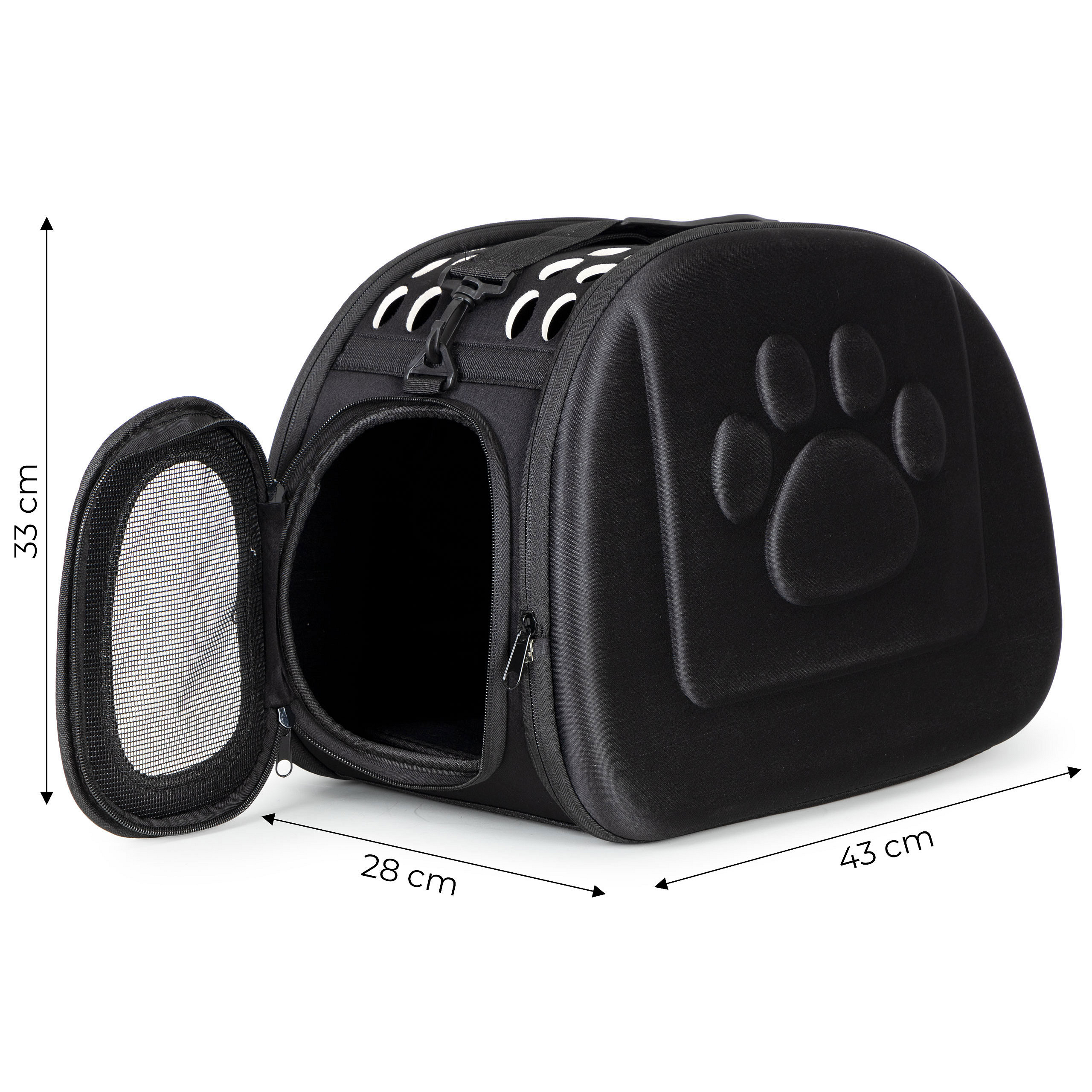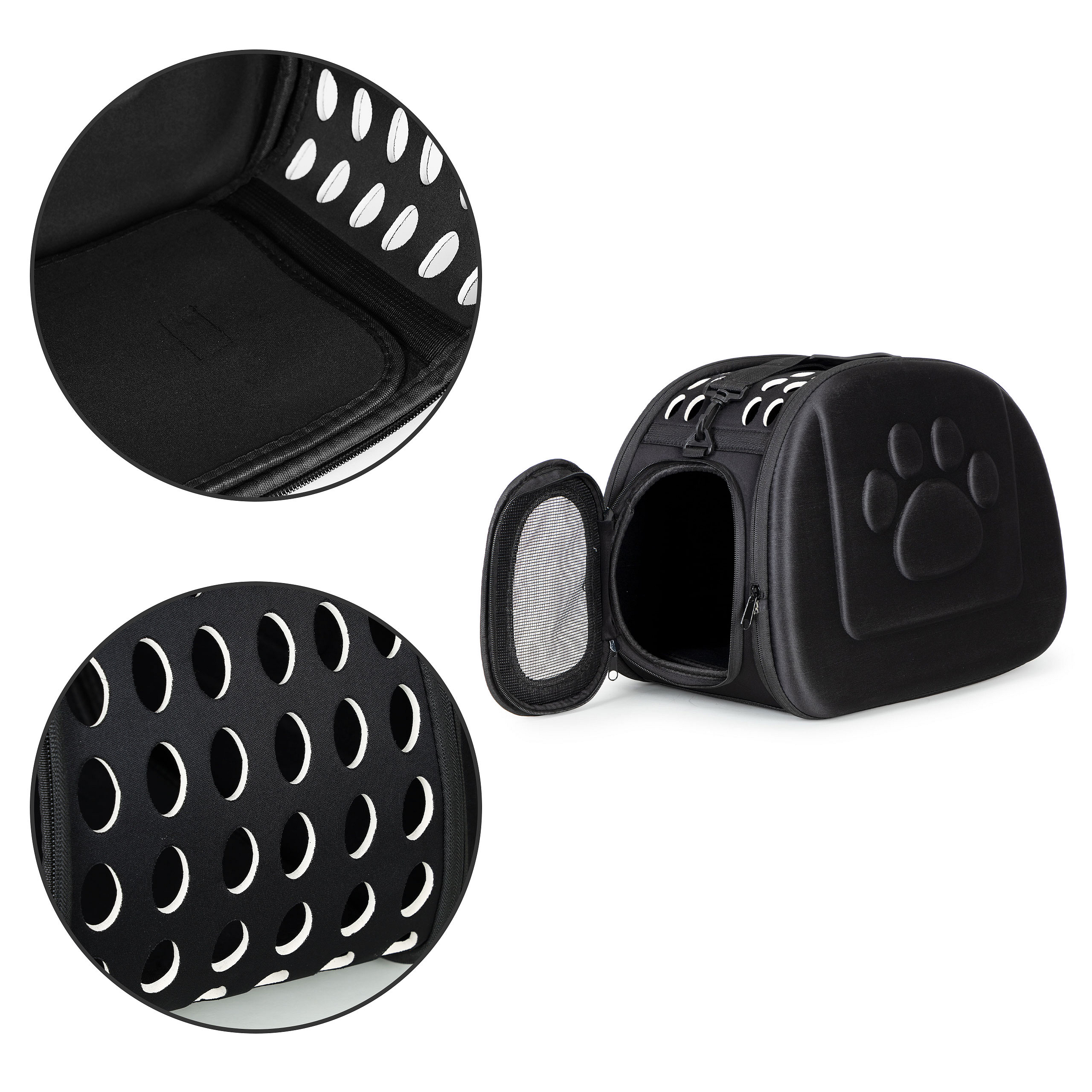 The bag can be opened on both sides, making it easier to access your pet and clean the carrier. You can easily place your pet inside or take it out no matter which side you open.