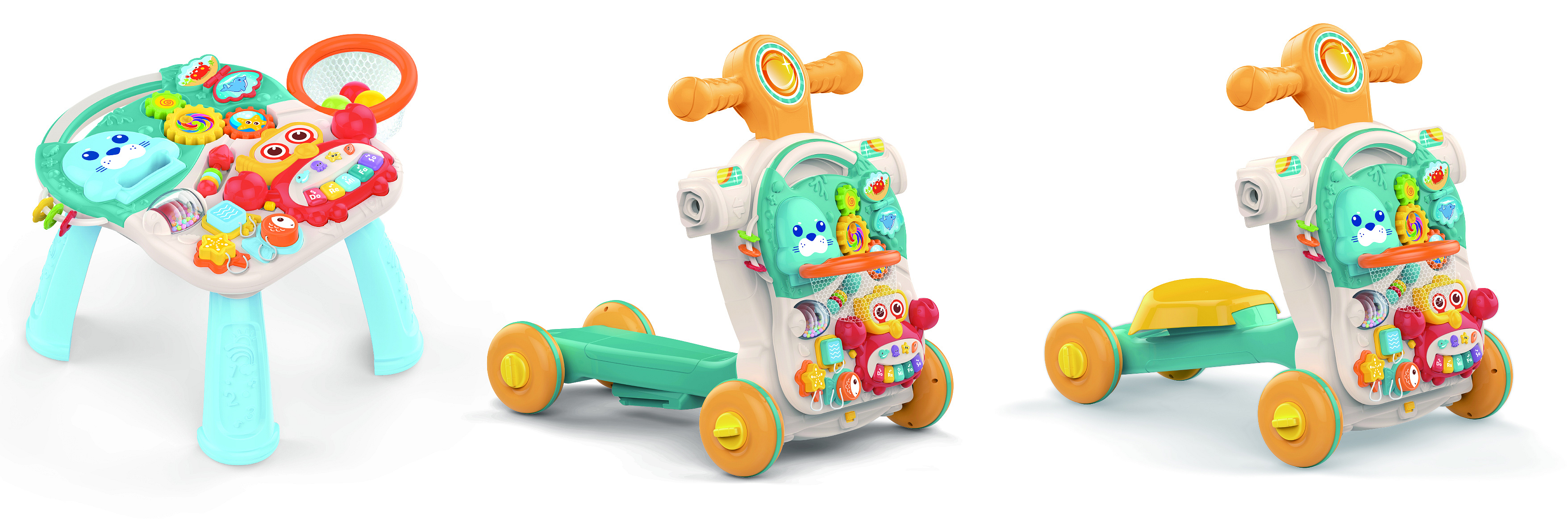 Učí a baví od nejmladších let. Ideální společník pro první krůčky, podporuje učení chůze.