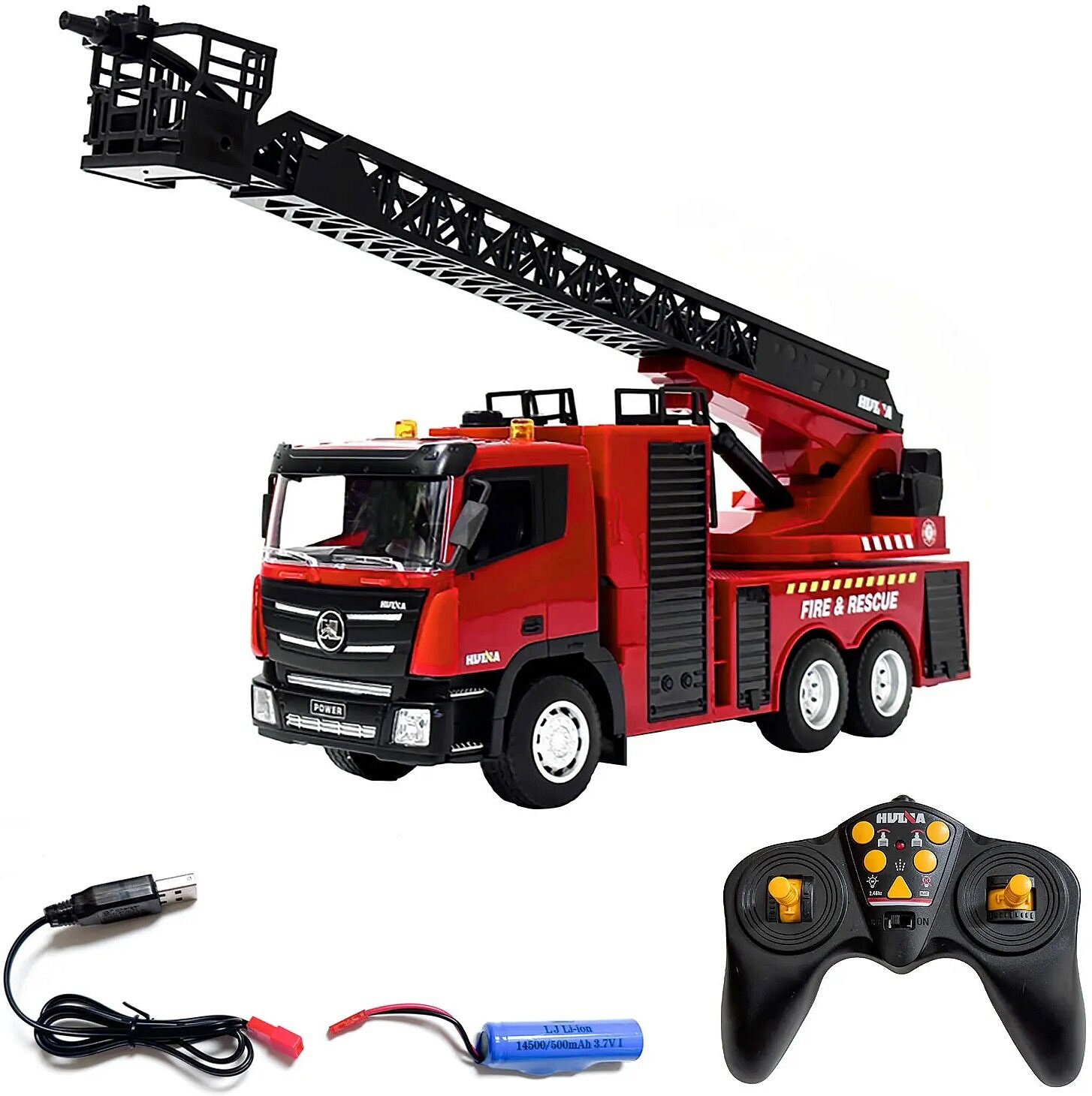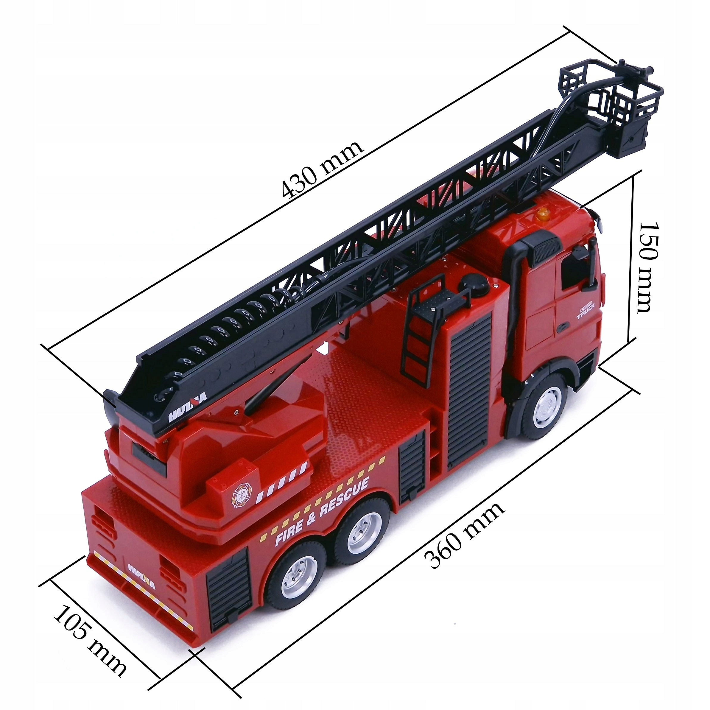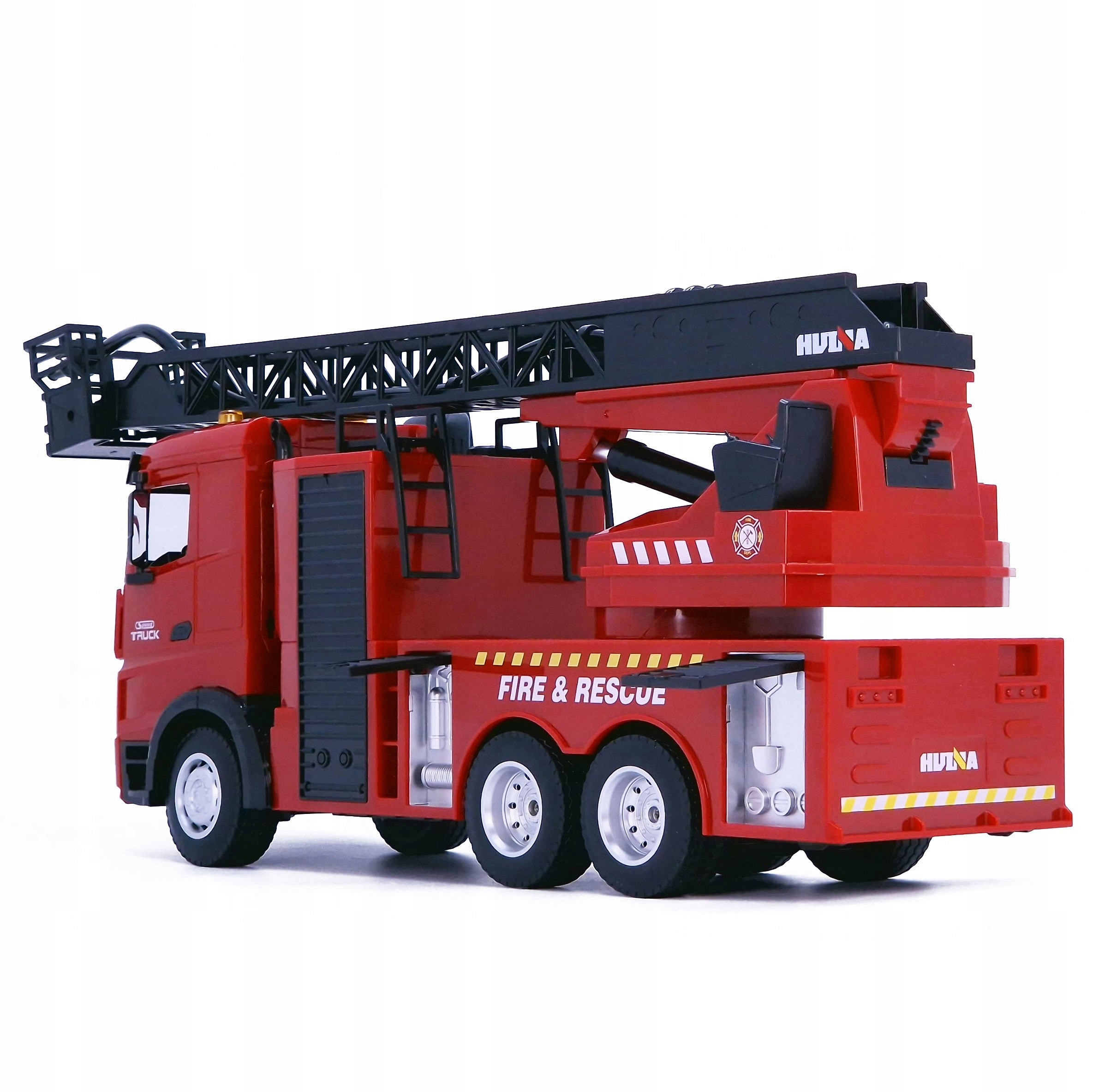 Dzięki 9-kanałowemu systemowi sterowania możesz precyzyjnie kierować ruchem drabiny, aktywować symulowane zraszanie wodą, włączać światła i dźwięki syreny - jak prawdziwy strażak na misji!