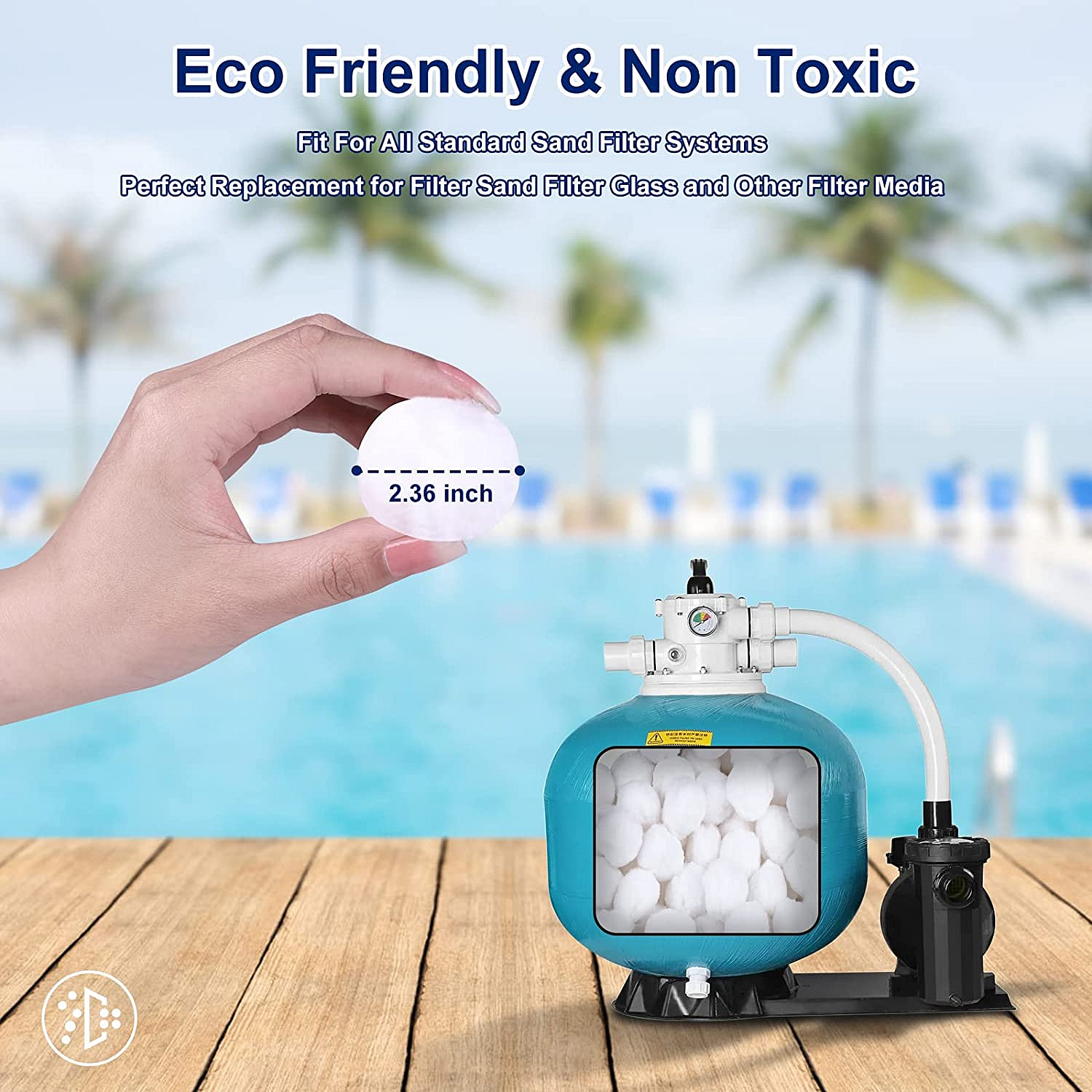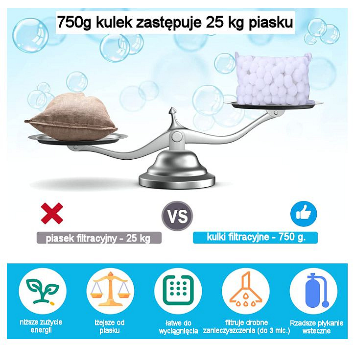 Kuličky o průměru 5 cm jsou optimální velikostí jako náhrada písku ve filtracích s pískem. Menší kuličky jsou vhodnější pro filtrování menších nádrží, jako jsou akvária.