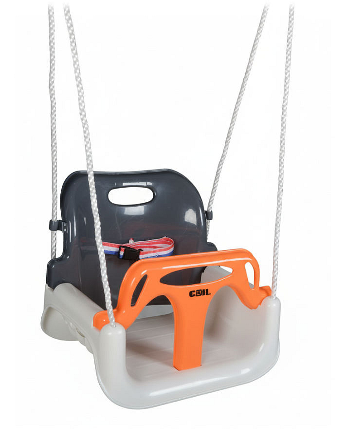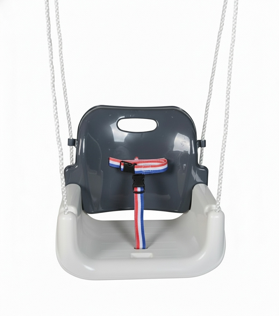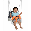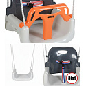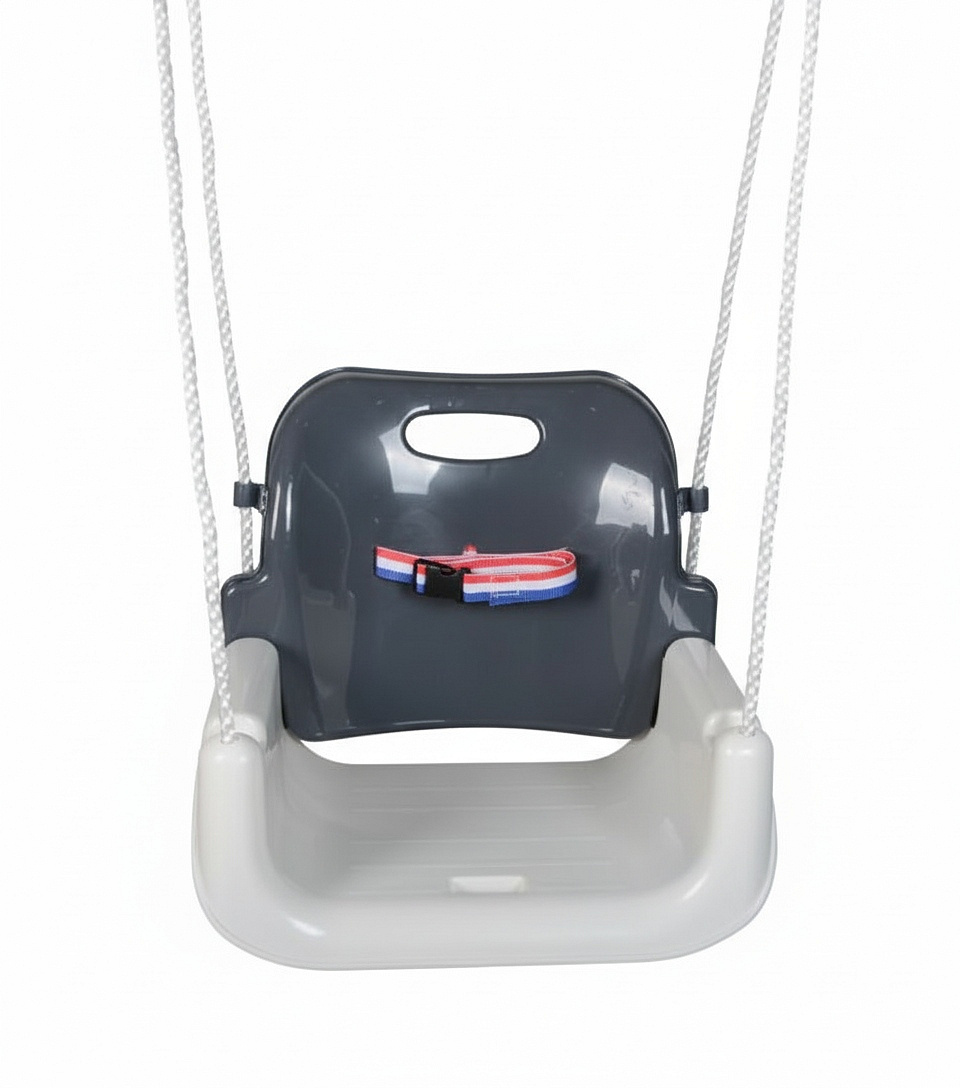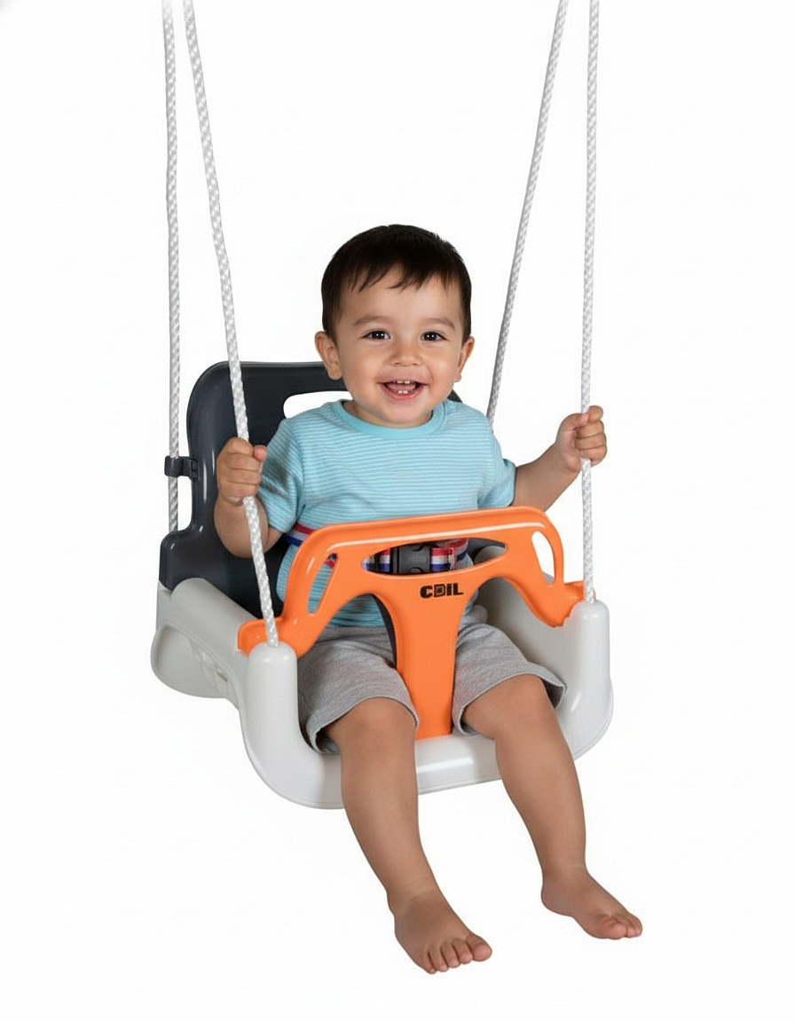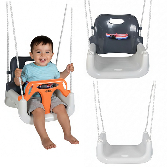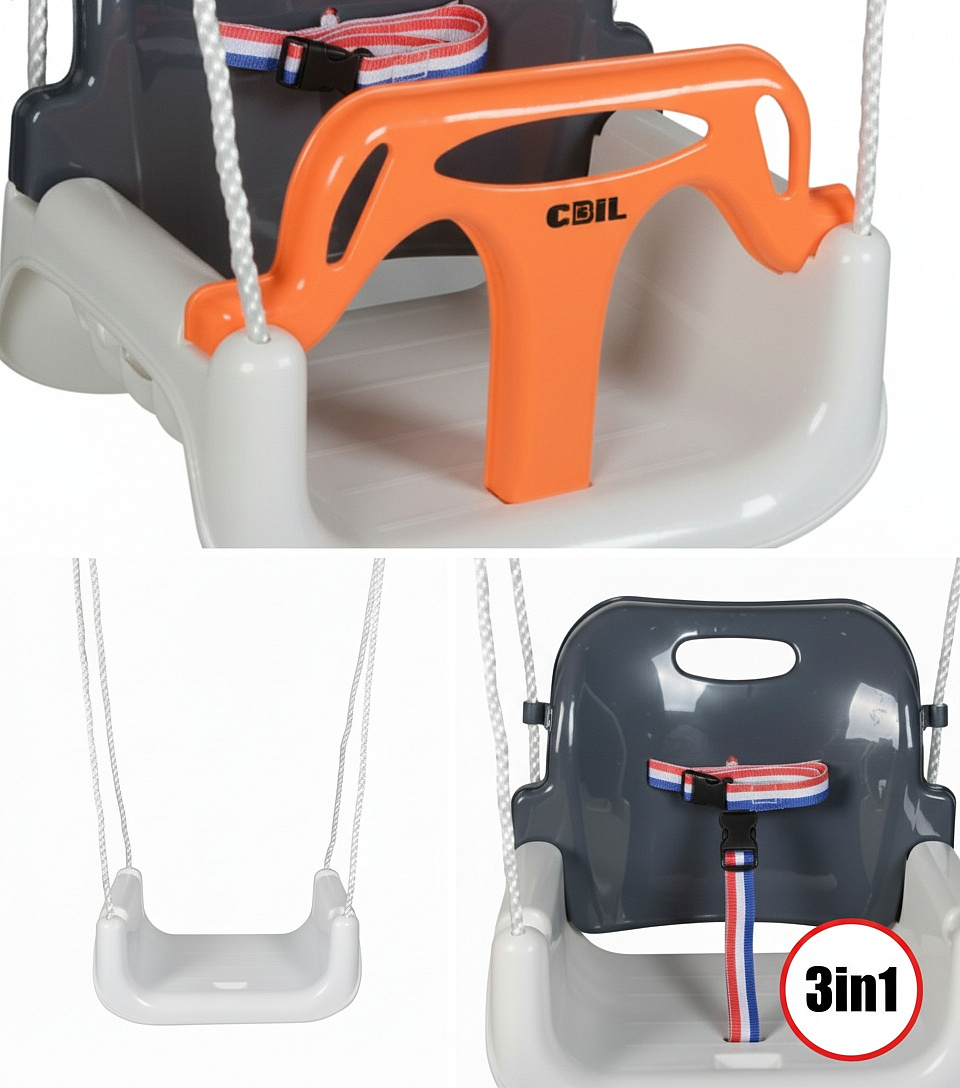 🔹 3 konfiguracje w 1 - rośnie z dzieckiem: kubełkowa z pasami → bez przedniej barierki → klasyczna huśtawka-deska