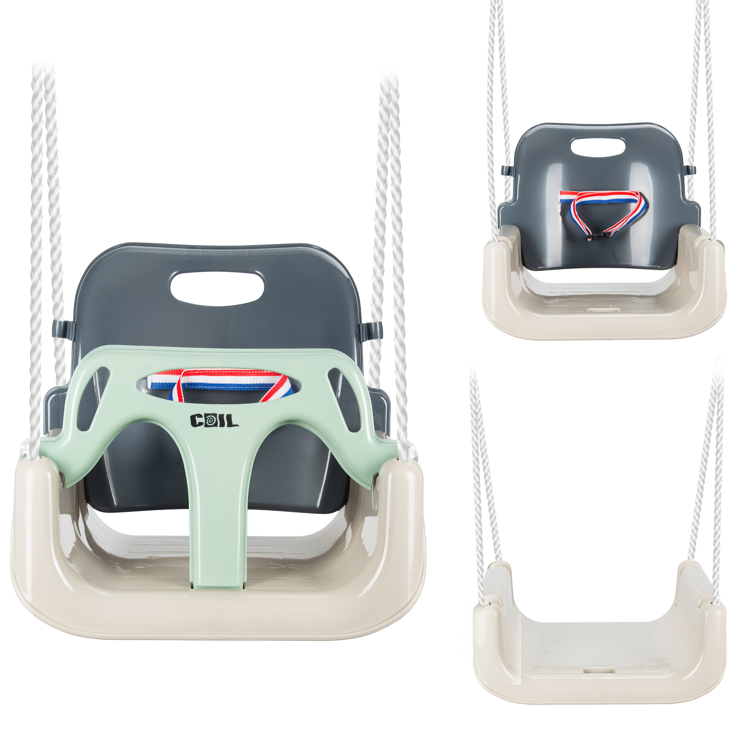 Díky nastavitelné délce lan a možnosti změny konfigurace sedadla houpačka roste spolu s dítětem:
