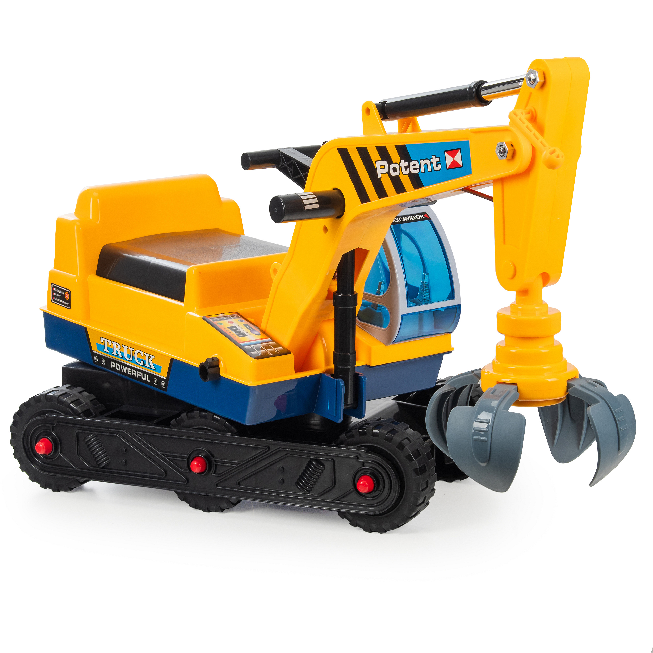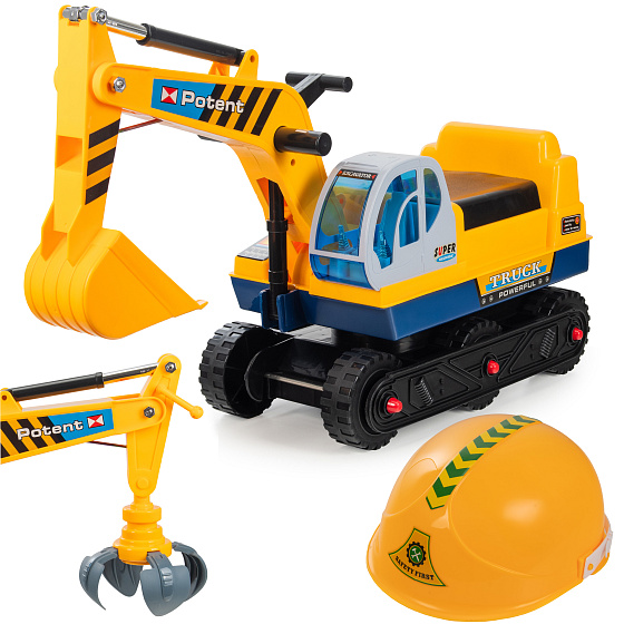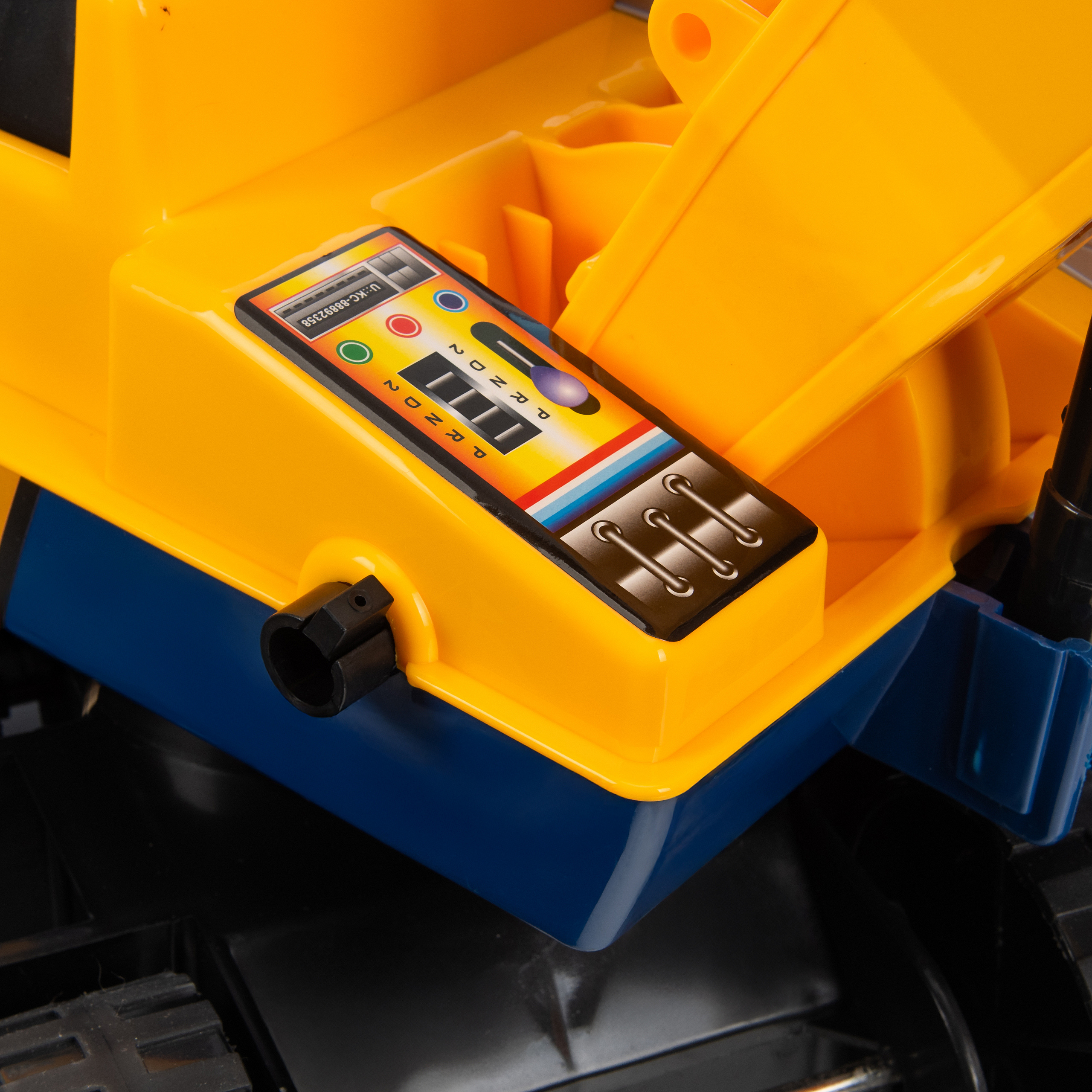 Děti mohou jezdit dopředu a dozadu, zvedat a spouštět drapák bagru, který se otevírá a zavírá, aby chytal malé předměty.