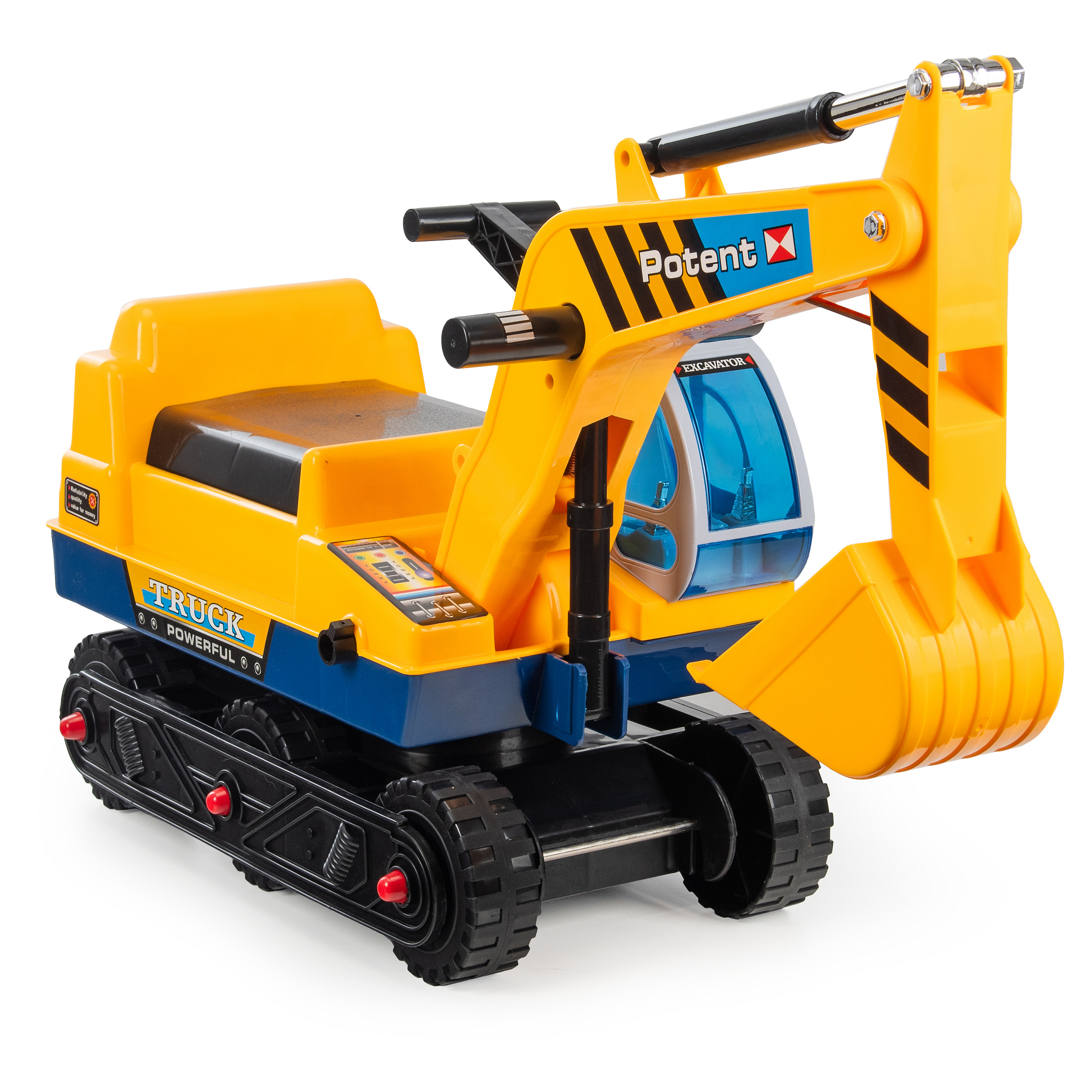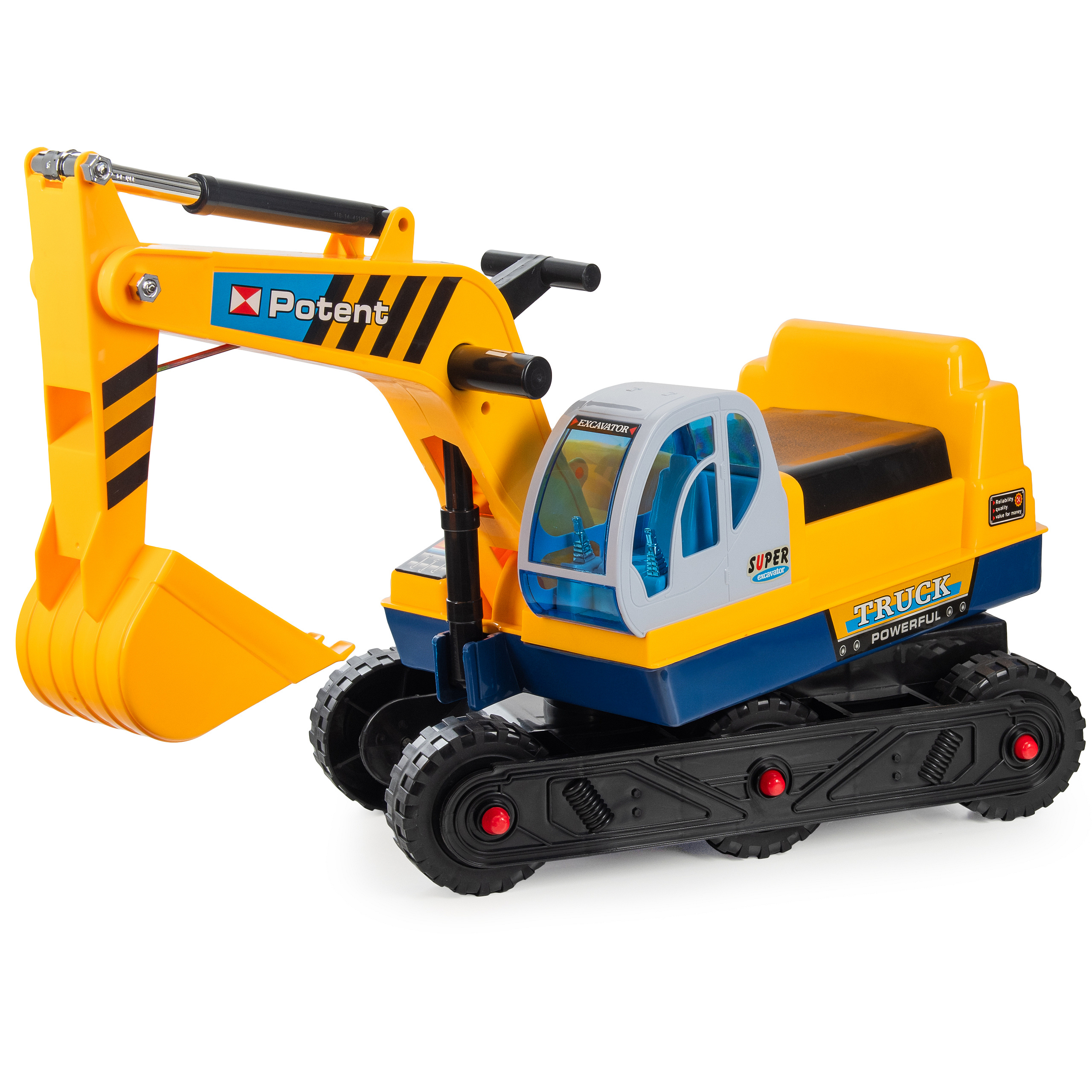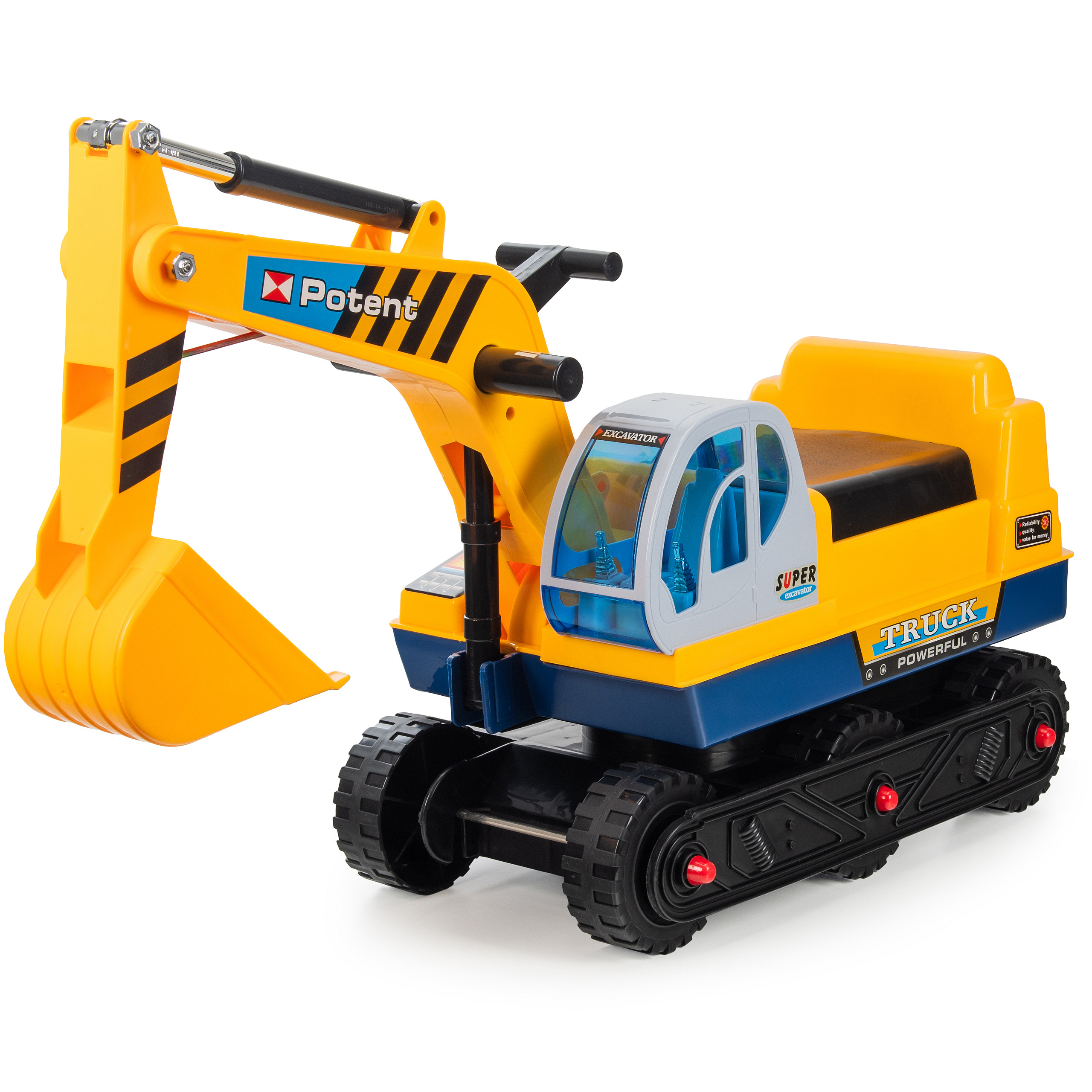 Děti mohou jezdit dopředu a dozadu, zvedat a spouštět drapák bagru, který se otevírá a zavírá, aby chytal malé předměty.