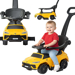 Dopřejte malému skutečný luxus s inspirovaným Lamborghini Urus jezditkem Lebula! To není jen hračka - to jsou 3 funkce v jednom: chodítko pro nejmenší, odrážedlo s rukojetí pro rodiče a samostatné vozítko pro odrážení nohama, když dítě povyroste.