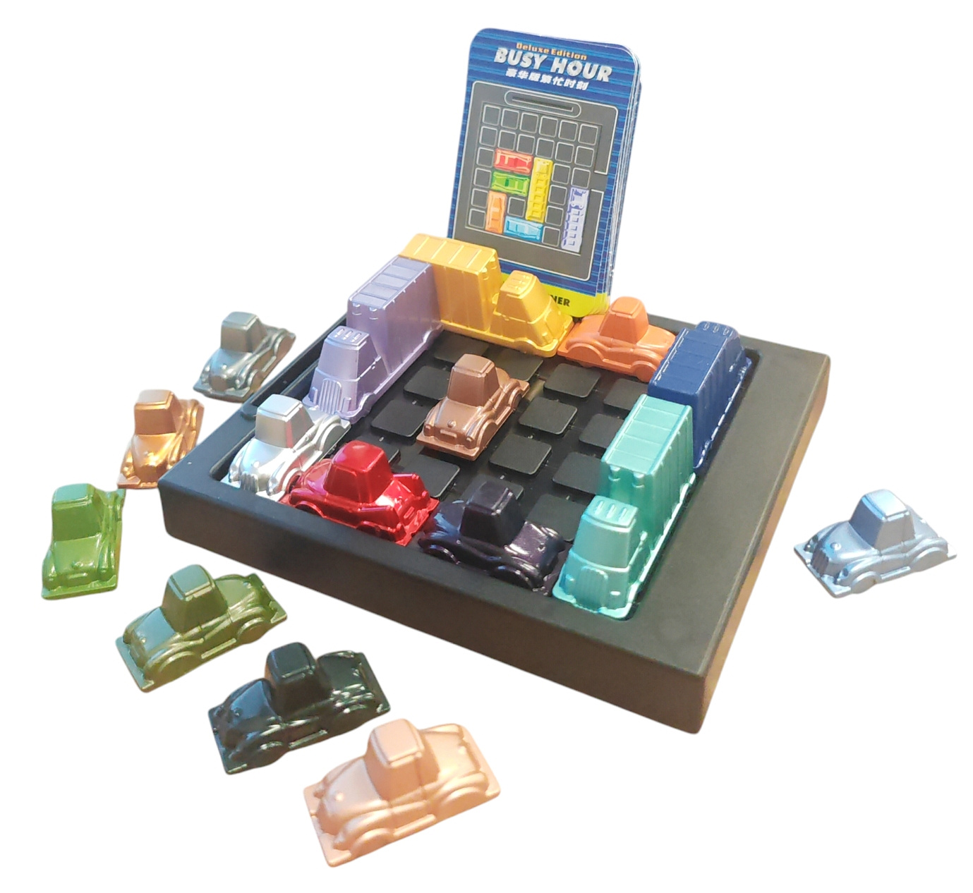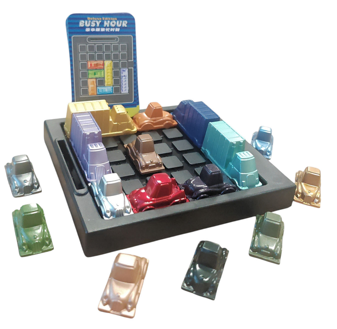 Logická hra spočívá v tom, že na hrací desce uspořádáte různobarevná autíčka podle konfigurace z libovolné karty s úkoly a poté vyvedete červené autíčko z dopravní zácpy, přičemž se pohybujete pouze vertikálně a horizontálně.