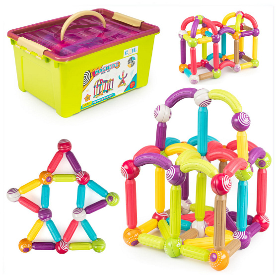 ✅ Zawartość: 82 magnetycznych elementów (kolorowe patyczki i kulki)